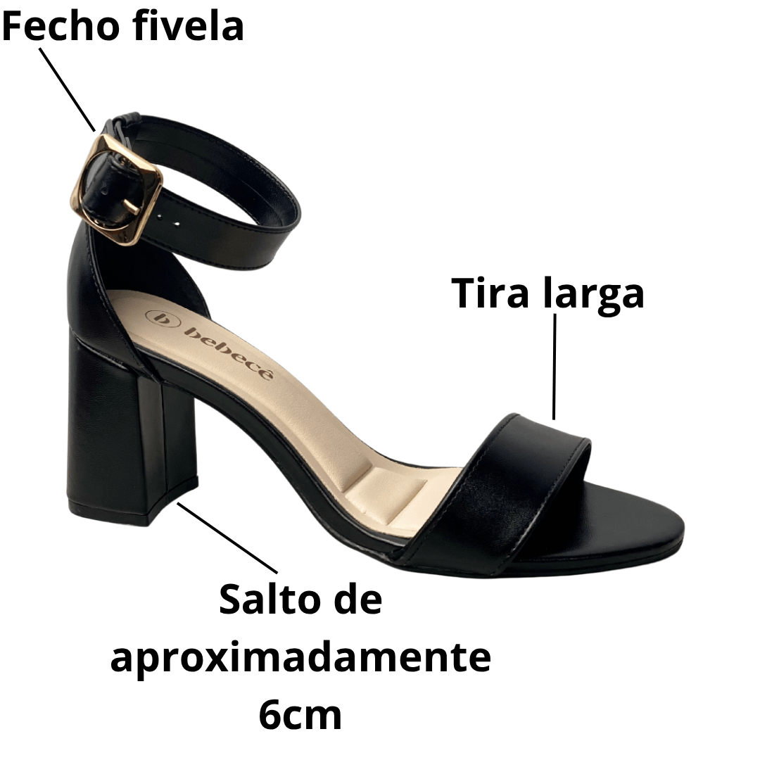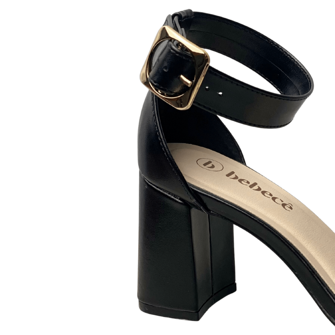 Sandália Bebecê Feminina Preto Fivela Dourada