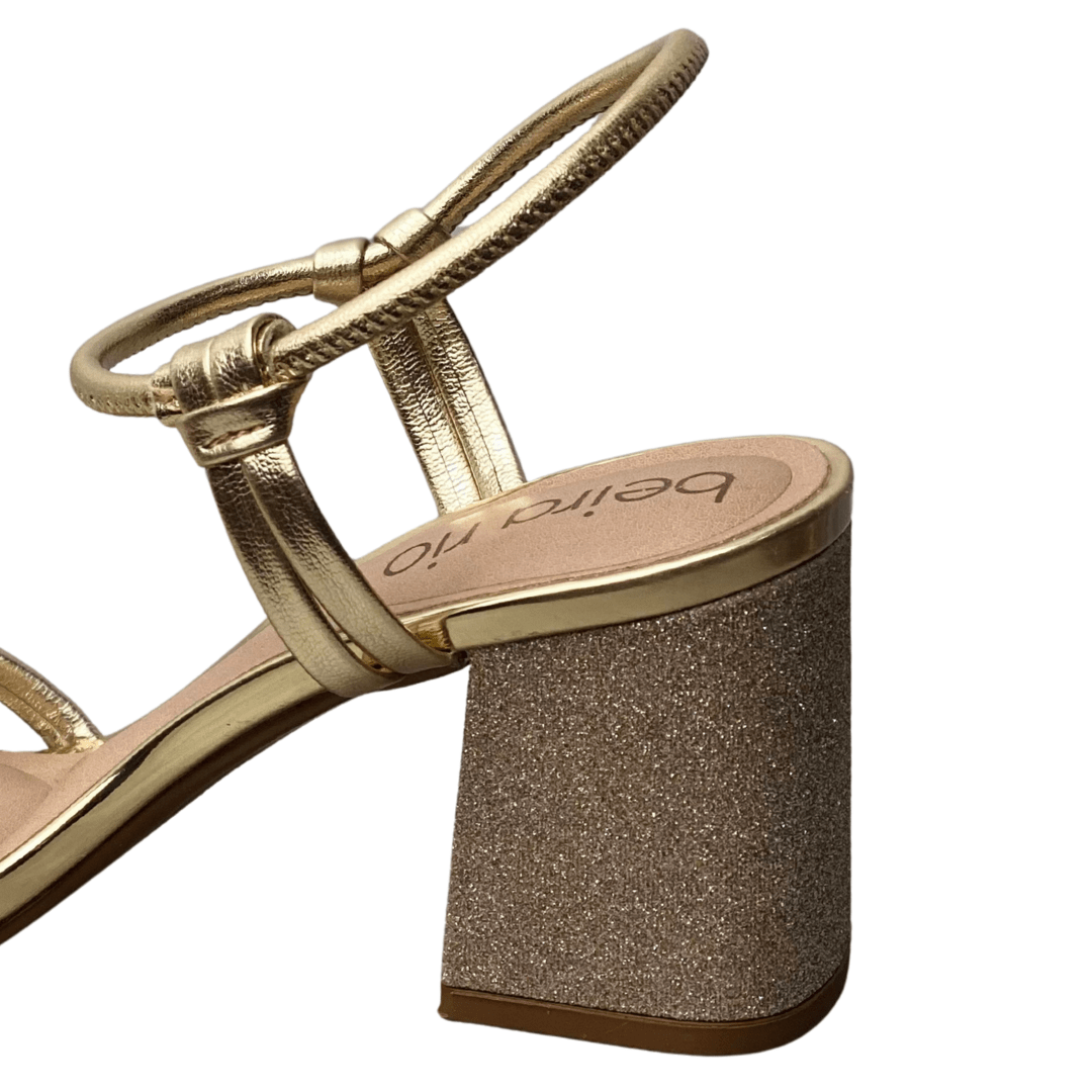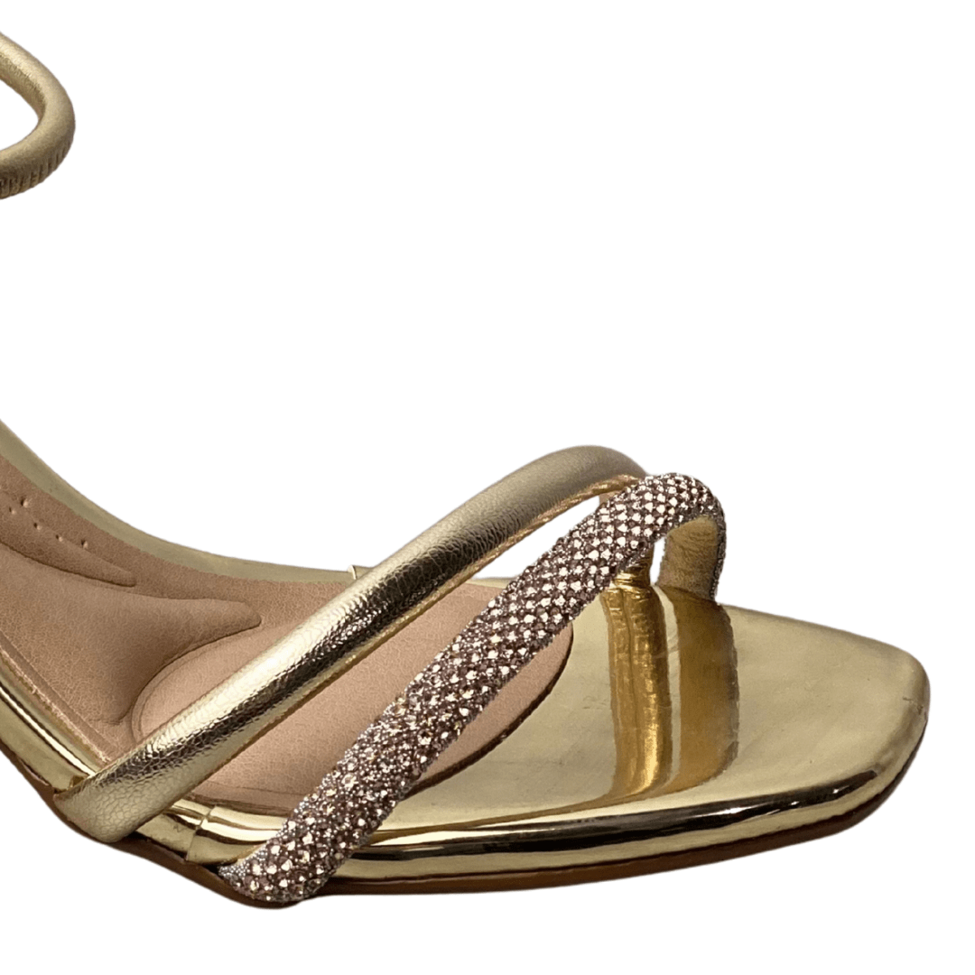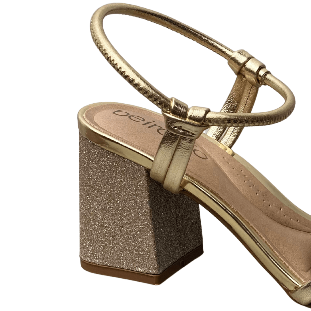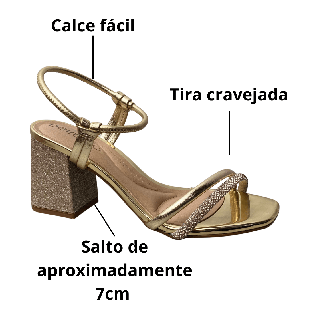 Sandália Beira Rio Feminina Ouro Rosado Tira Cravejada