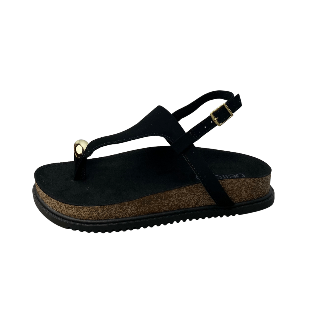 Sandália Beira Rio Feminina Preto Ferragem Dourada