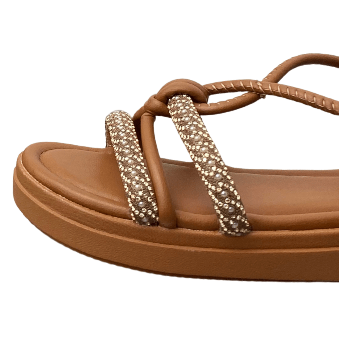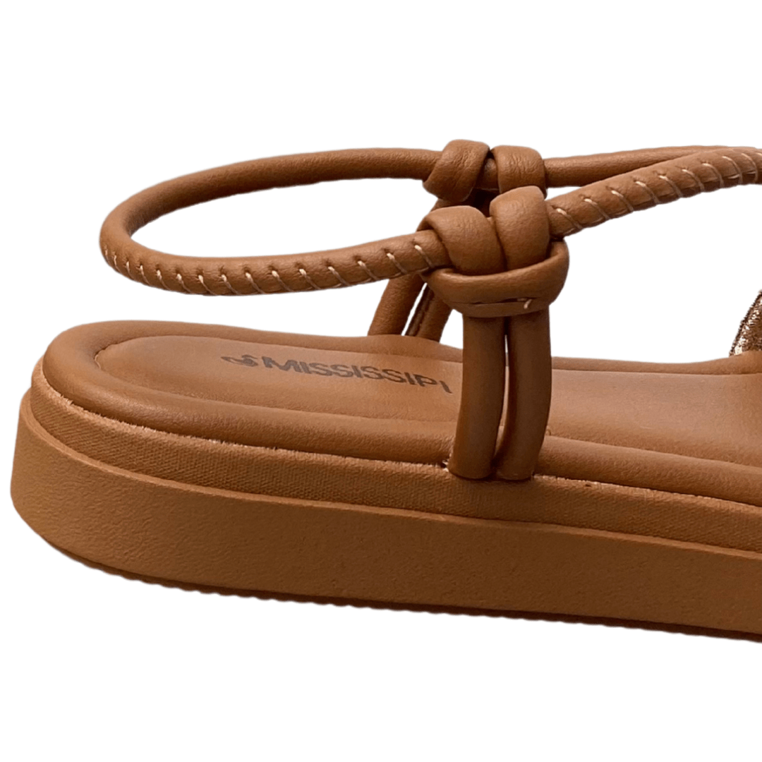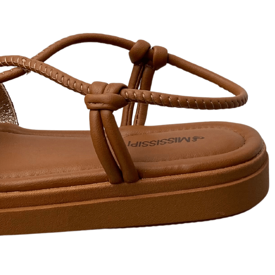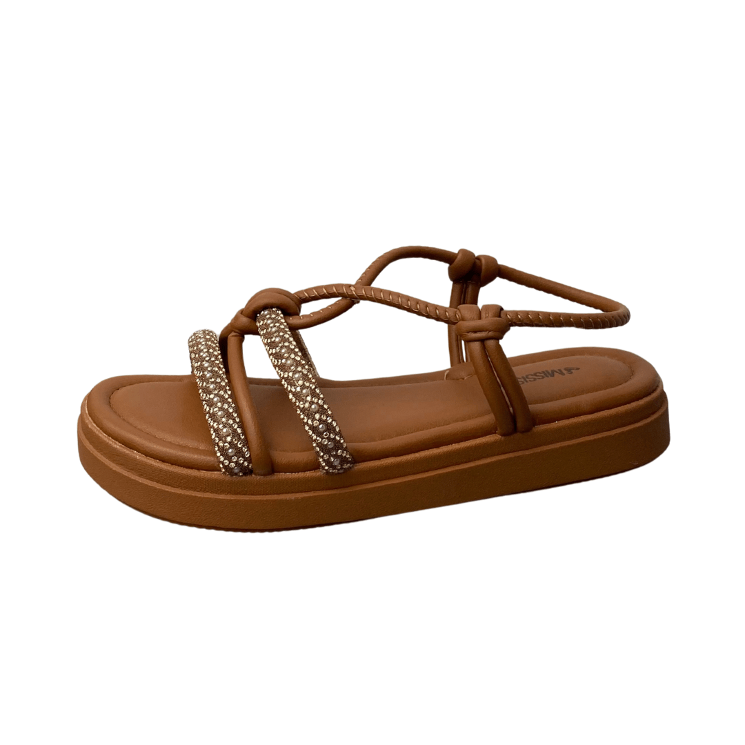 Sandália Flat Mississipi Feminina Mascavo Tira Cravejada