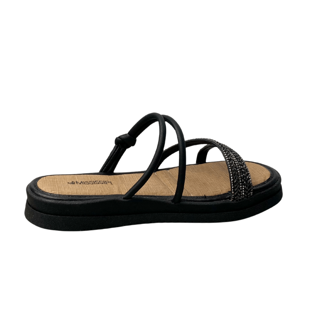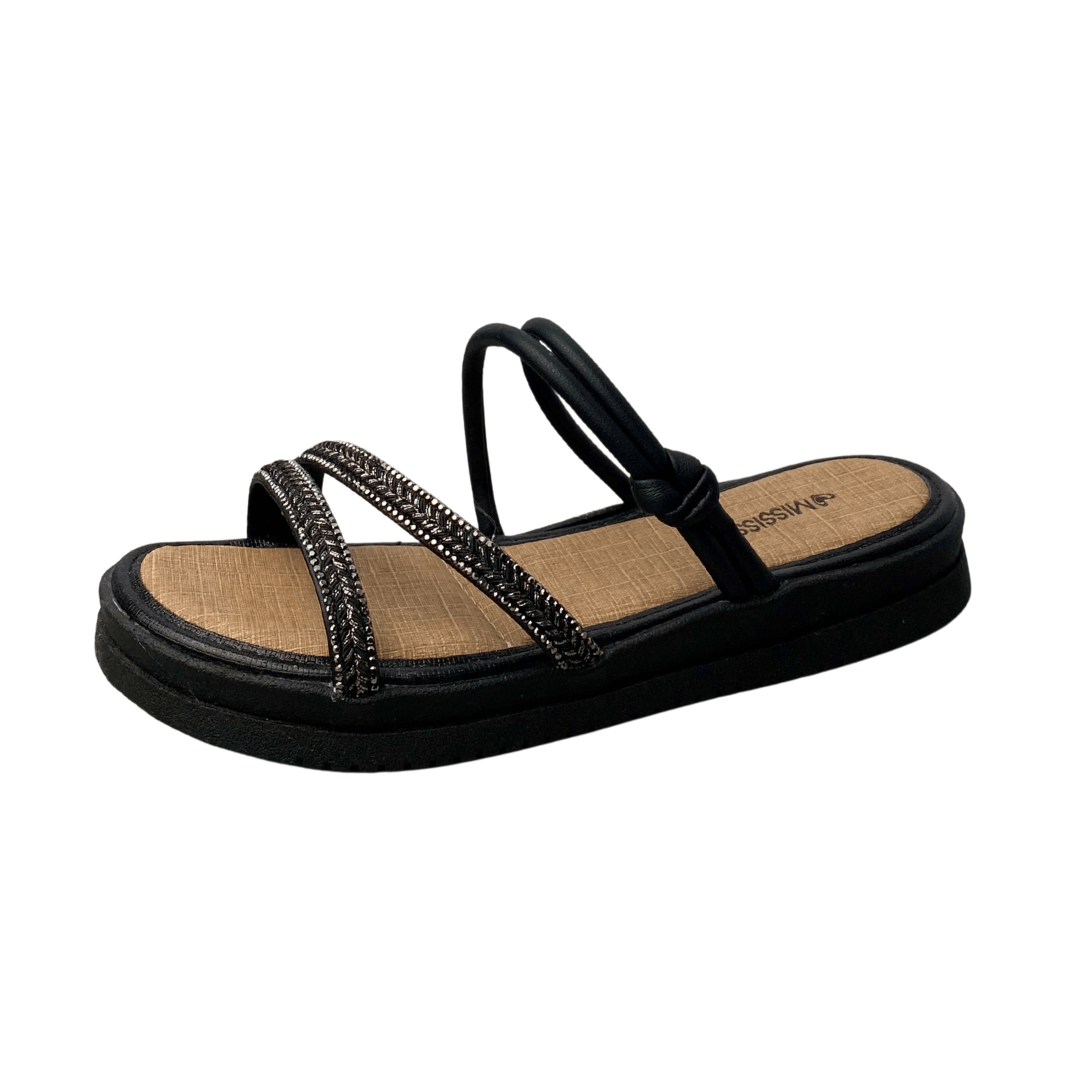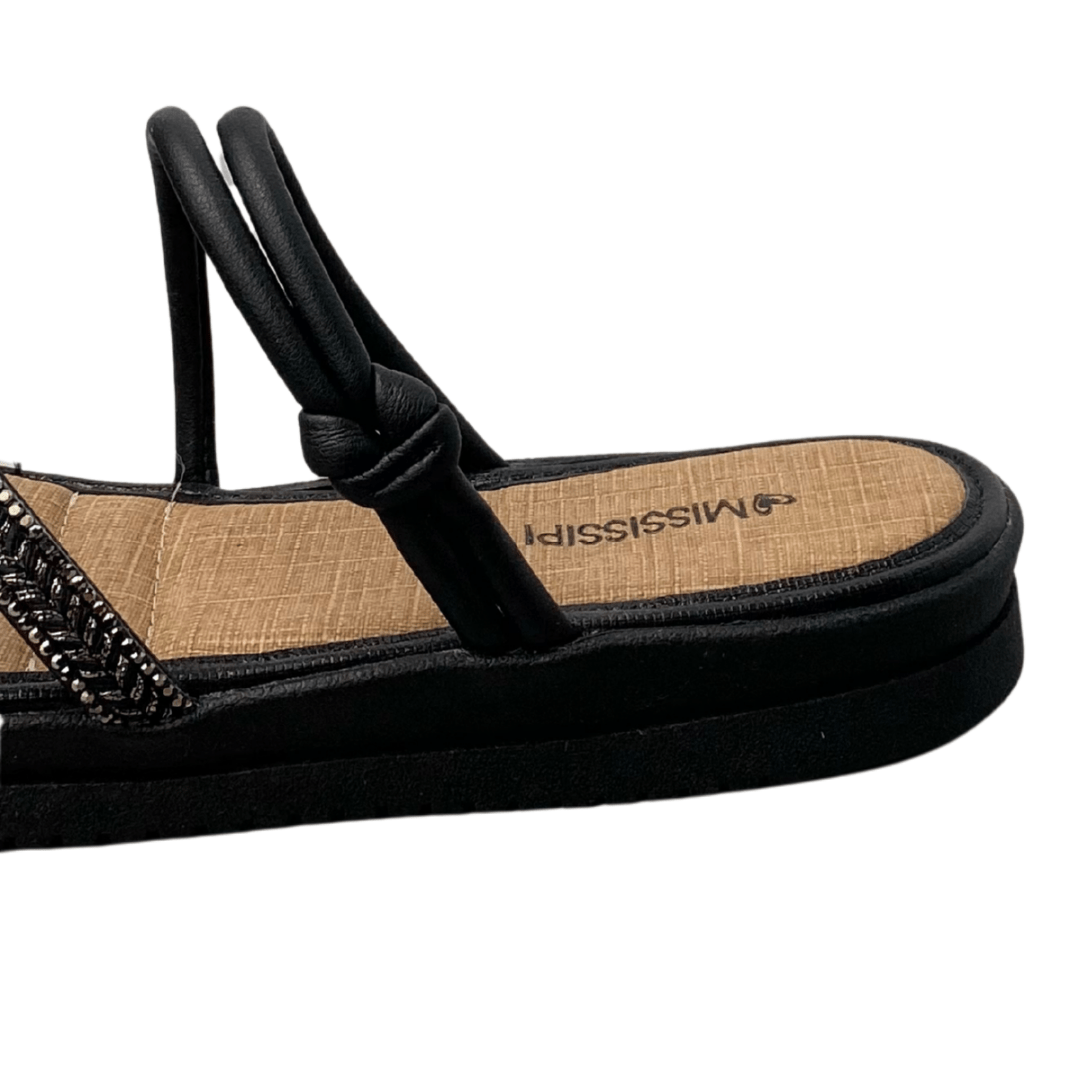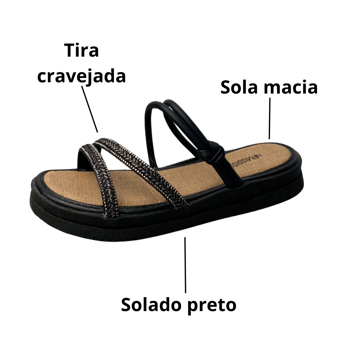 Sandália Flat Mississipi Feminina Preta com Brilho