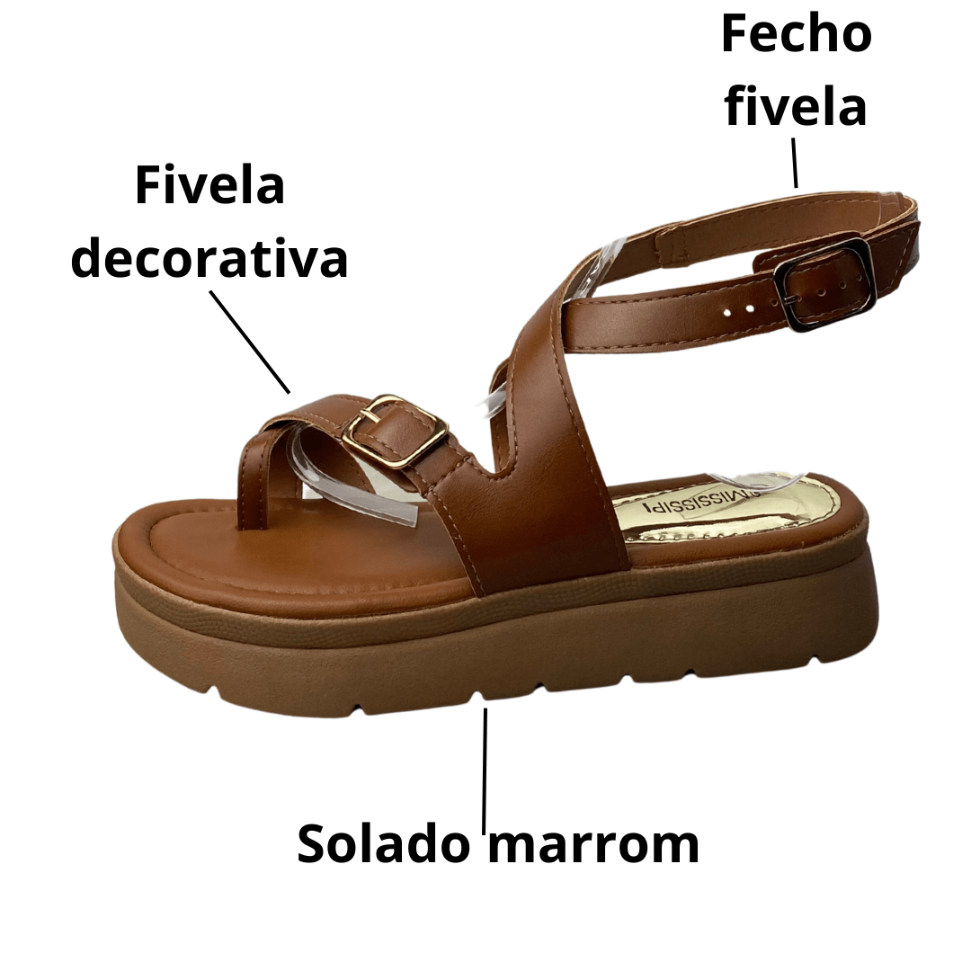 A Sandália Flat Mississipi Feminino Tabaco com Fivelas Douradas é a escolha ideal para quem deseja unir estilo, modernidade e conforto. Seu design flat com solado leve garante estabilidade, enquanto os detalhes em fivela dourada trazem sofisticação ao visual. Um calçado versátil para te acompanhar do dia a dia aos momentos mais especiais.
