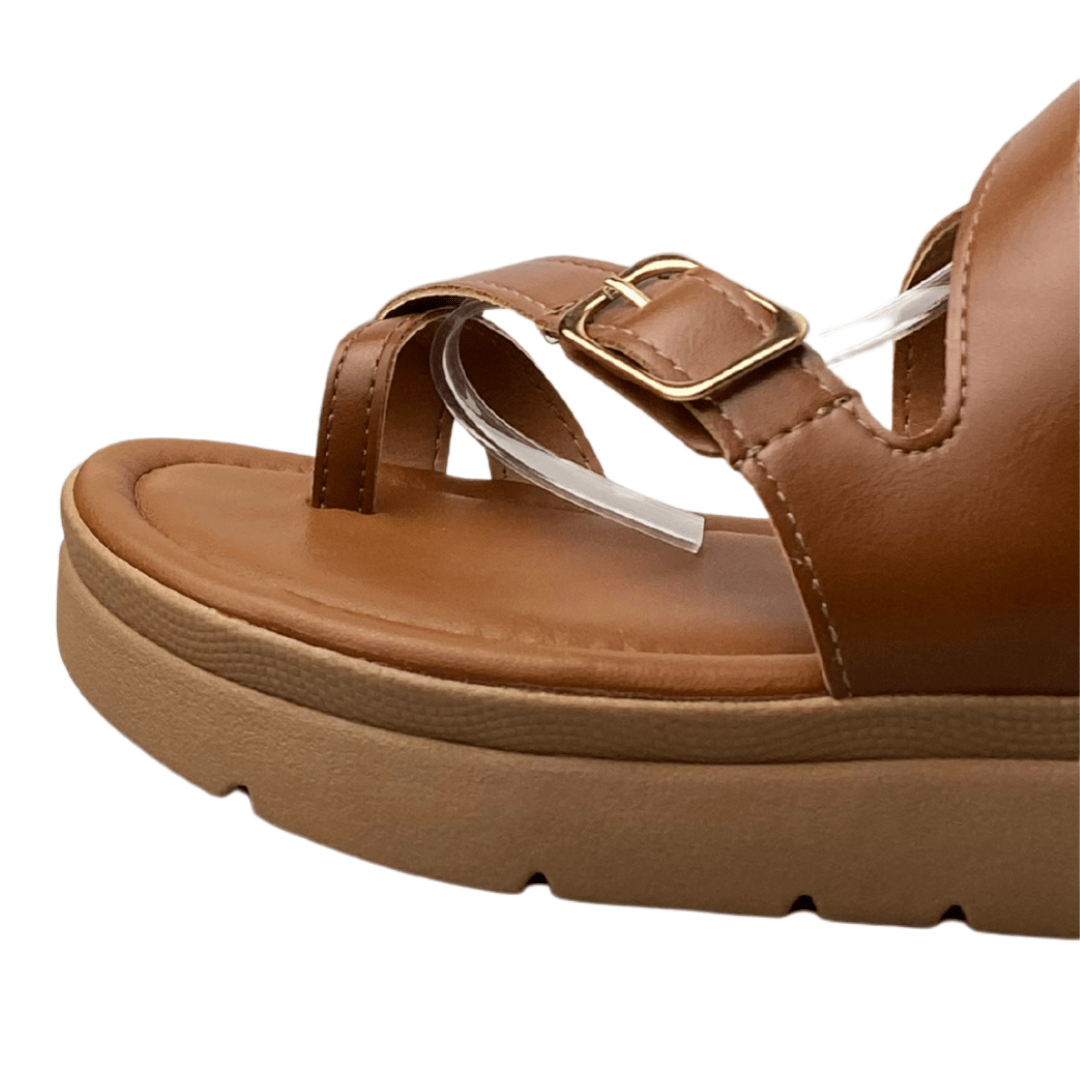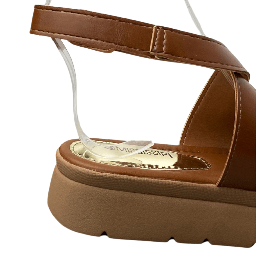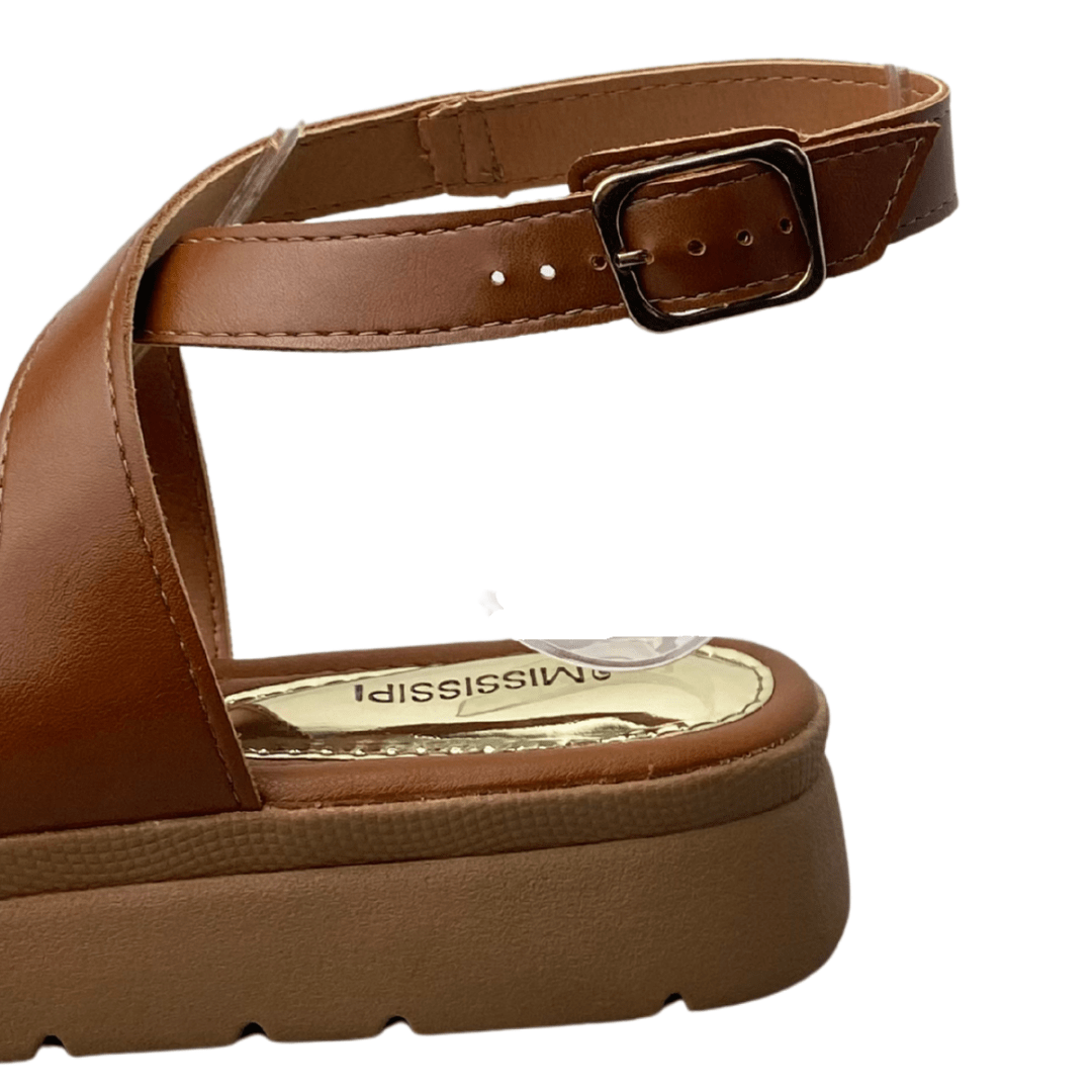Sandália Flat Mississipi Feminino Tabaco Fivelas Douradas