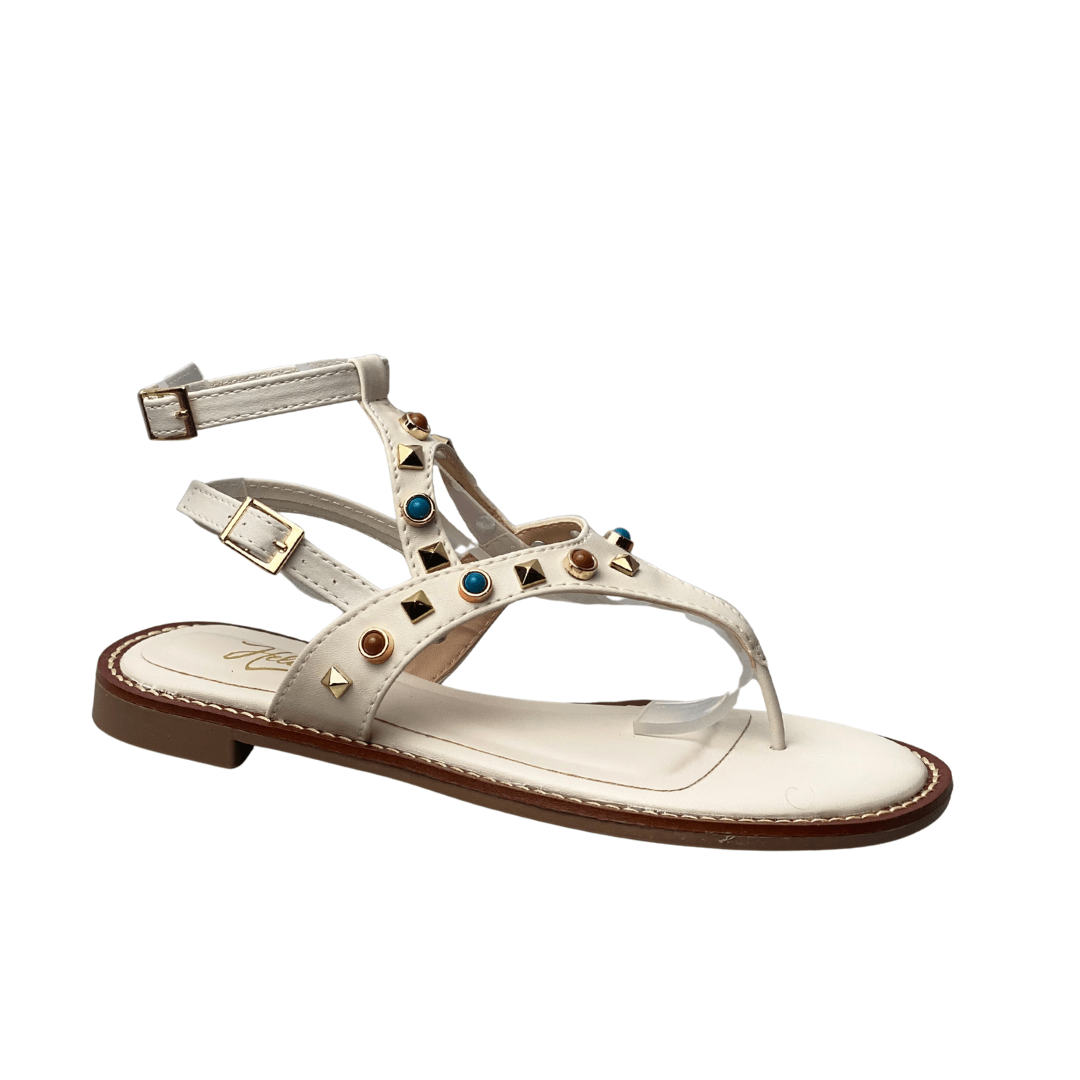O design elegante com pedrarias coloridas e tachas metálicas adiciona um toque sofisticado e diferenciado ao look.