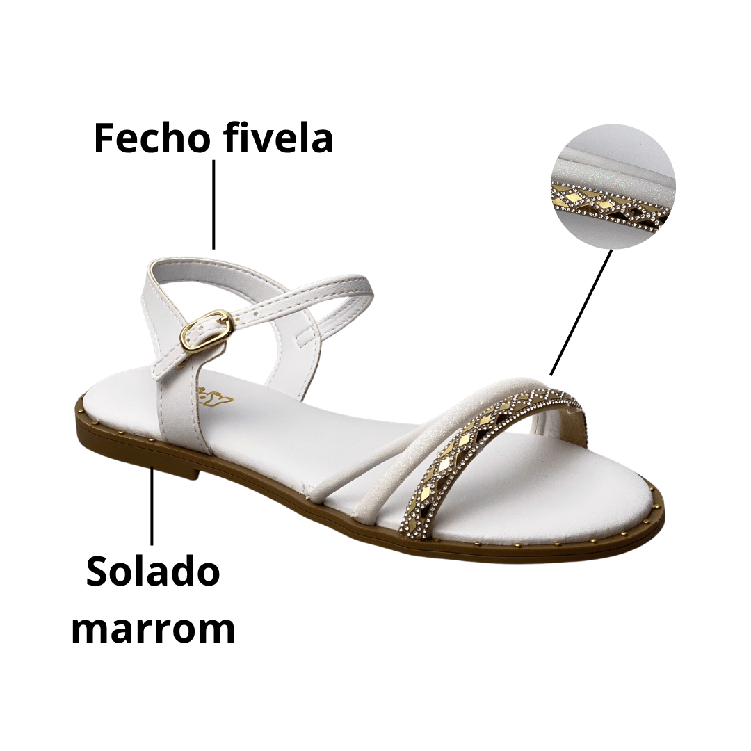 Sandália Kidy Infantil Feminina Branca Tira Cravejada