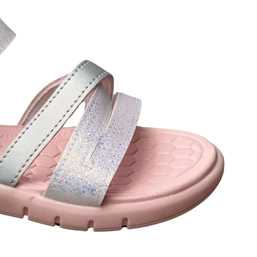 Perfeita para o dia a dia, passeios ou festas, combina com vestidos, shorts e conjuntos leves. O fechamento em velcro facilita o uso, tornando a sandália prática para as crianças calçarem sozinhas.