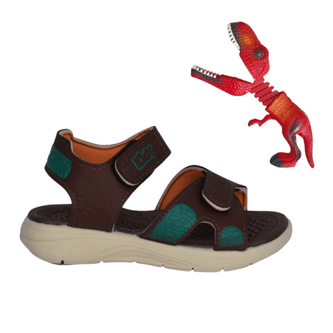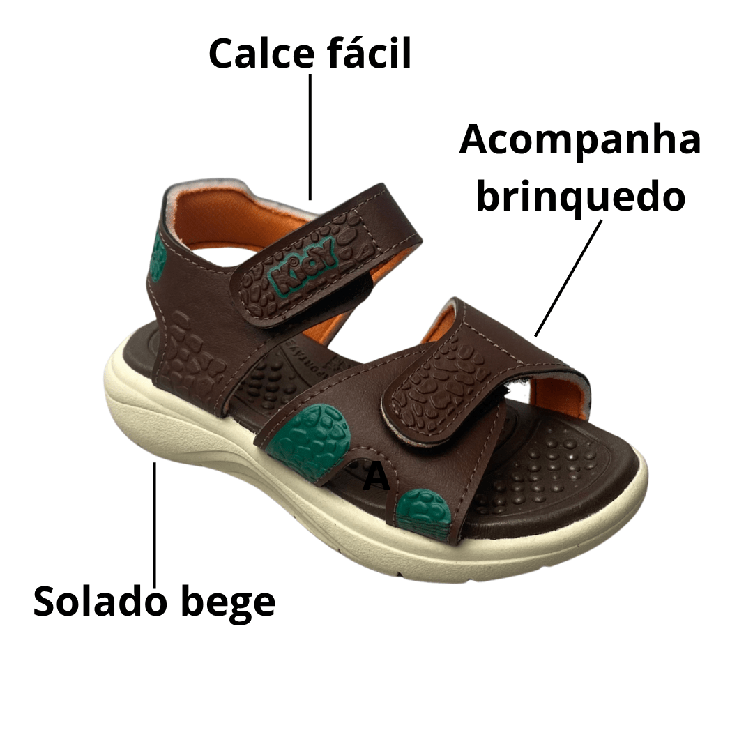Sandália Kidy Infantil Masculina Marrom + Brinde Dino