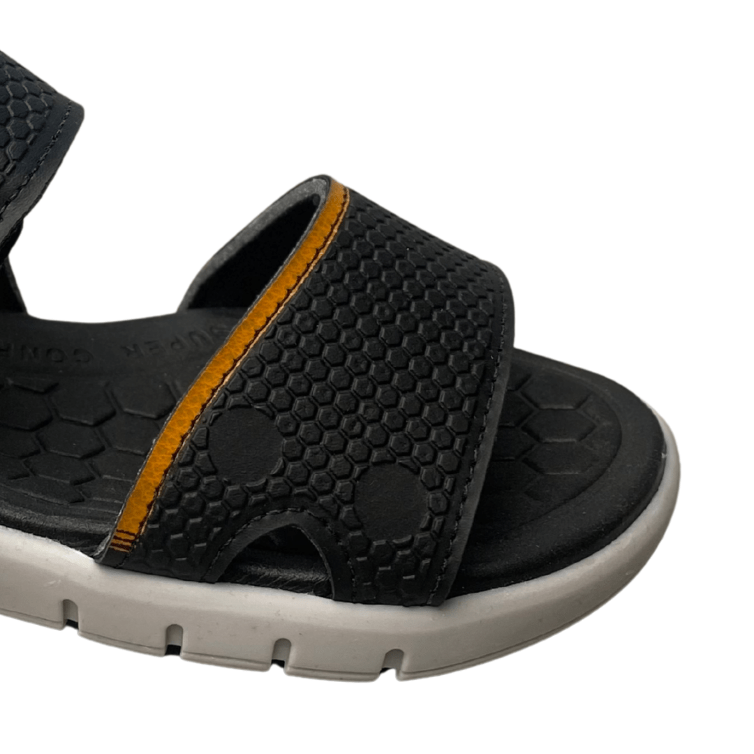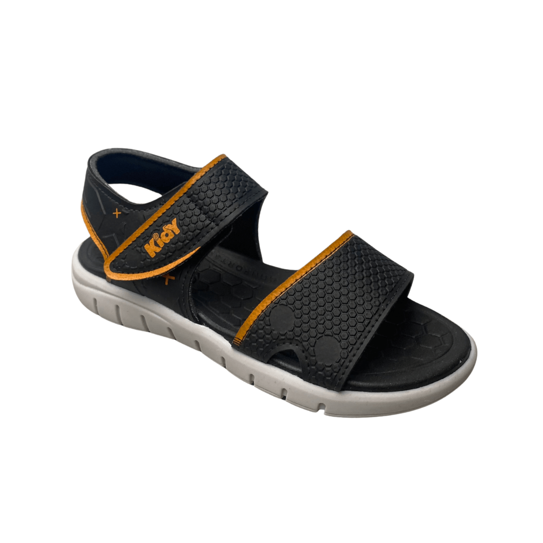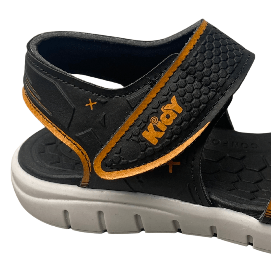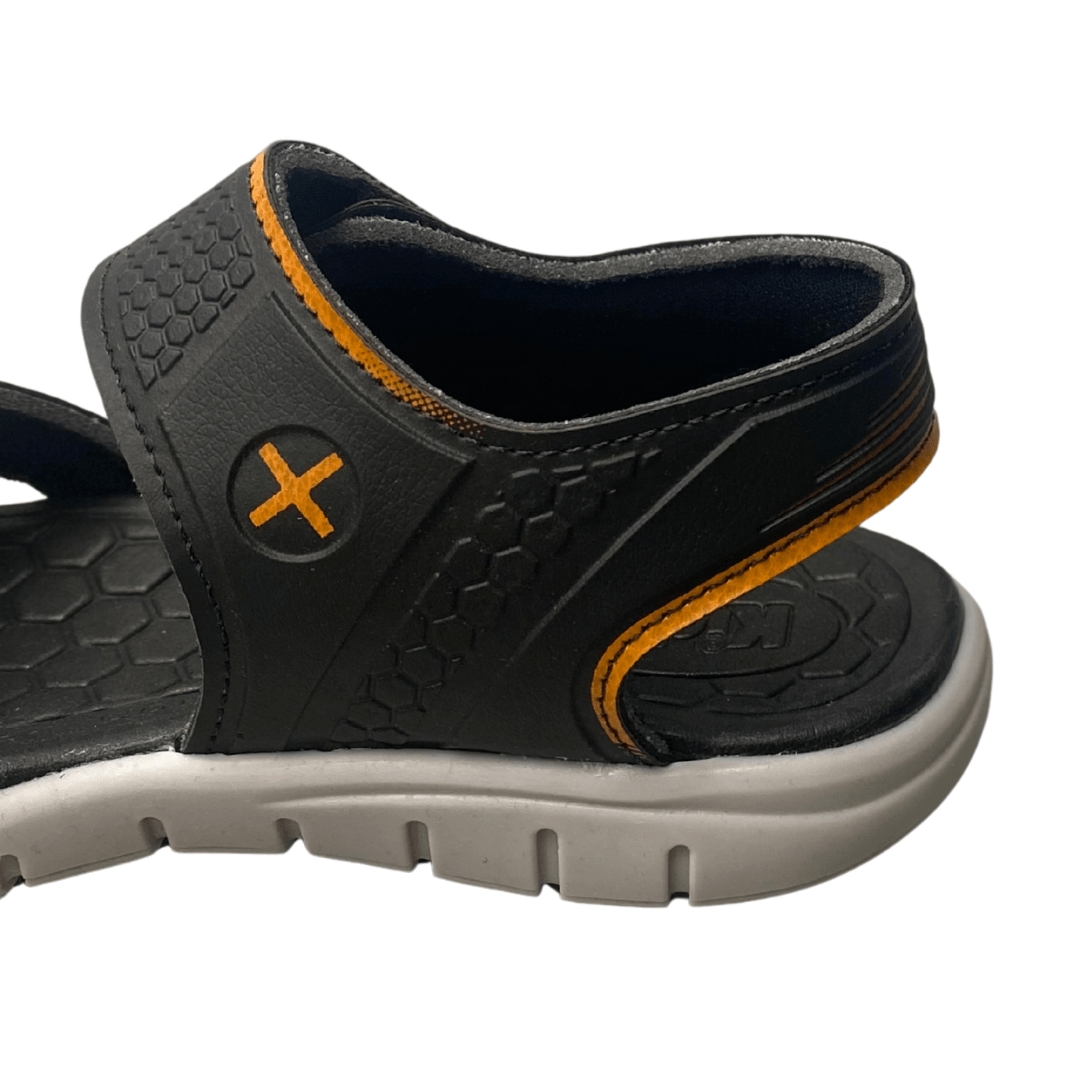 Design moderno: Combina o preto com detalhes em laranja, trazendo um visual descolado que combina com qualquer look infantil.