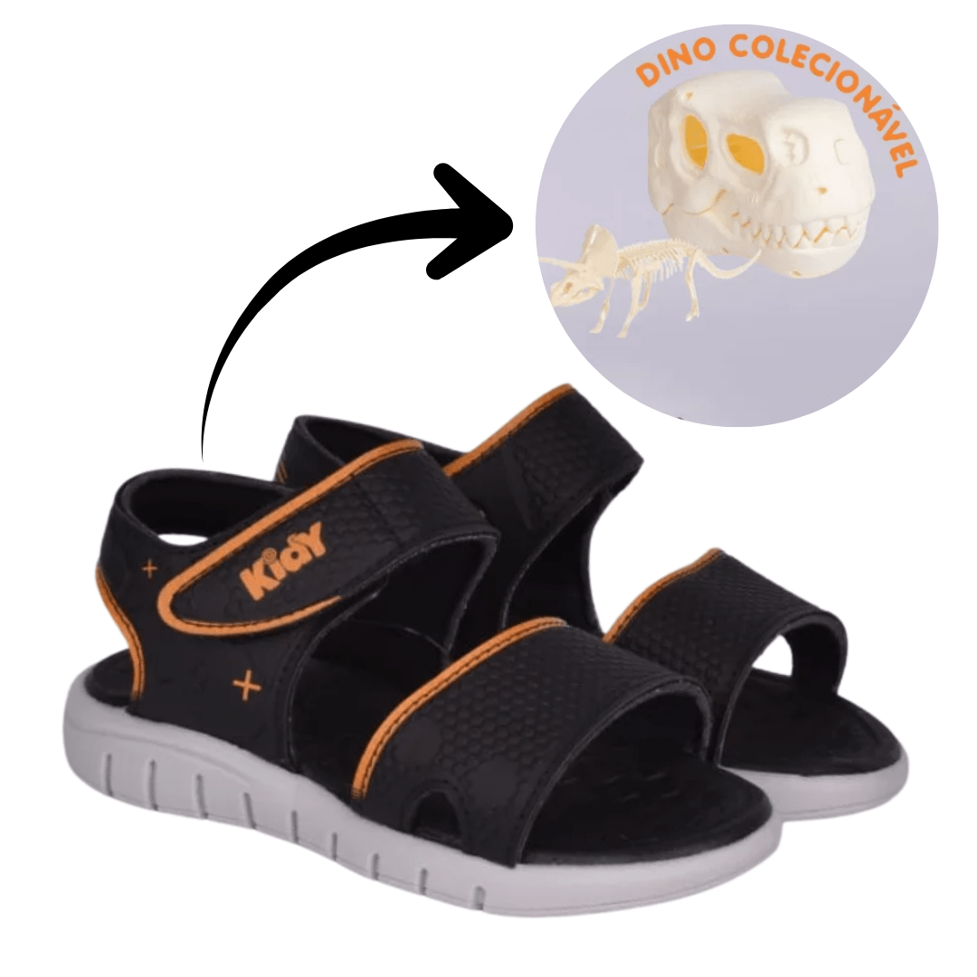 Sandália Kidy Infantil Masculina Preto + Dino Colecionável