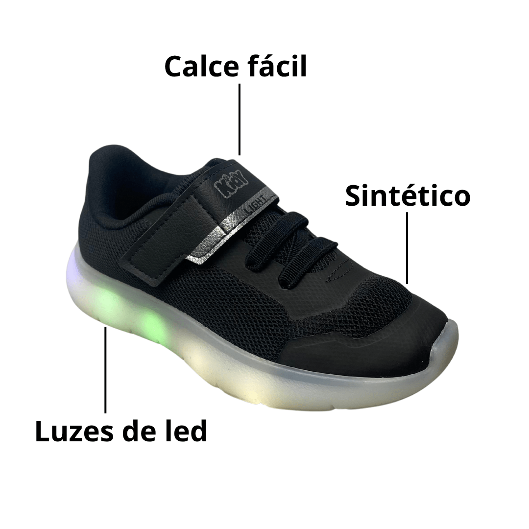 Tênis Kidy Infantil Masculino Preto com Luzes de LED