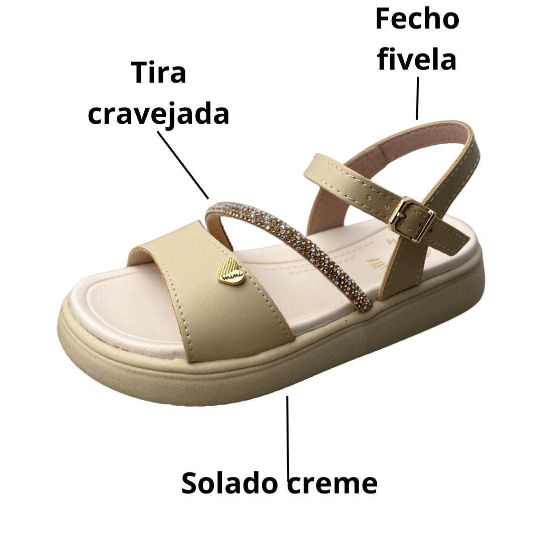 Sandália Mini Sua Cia Infantil Feminina Areia Tira Cravejada