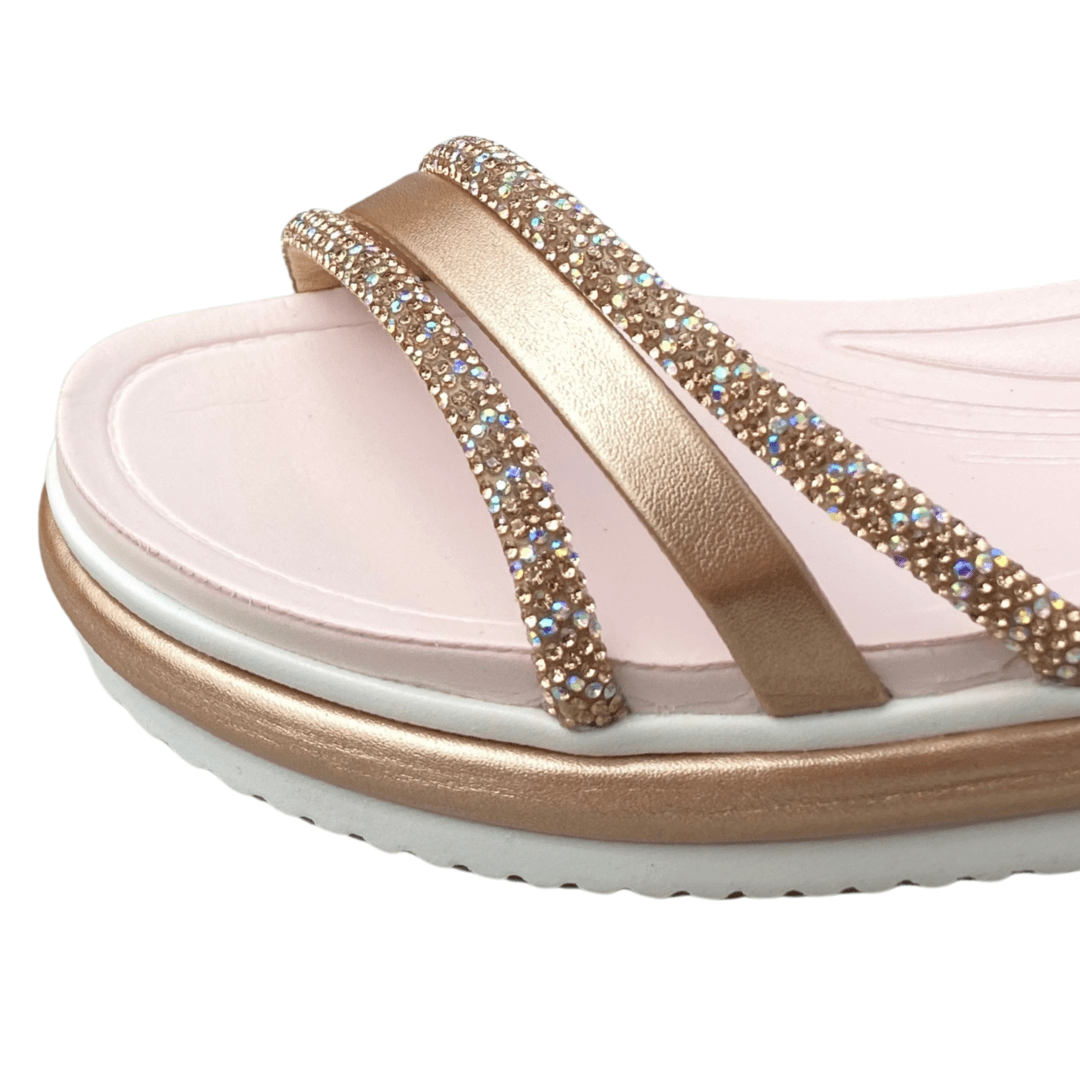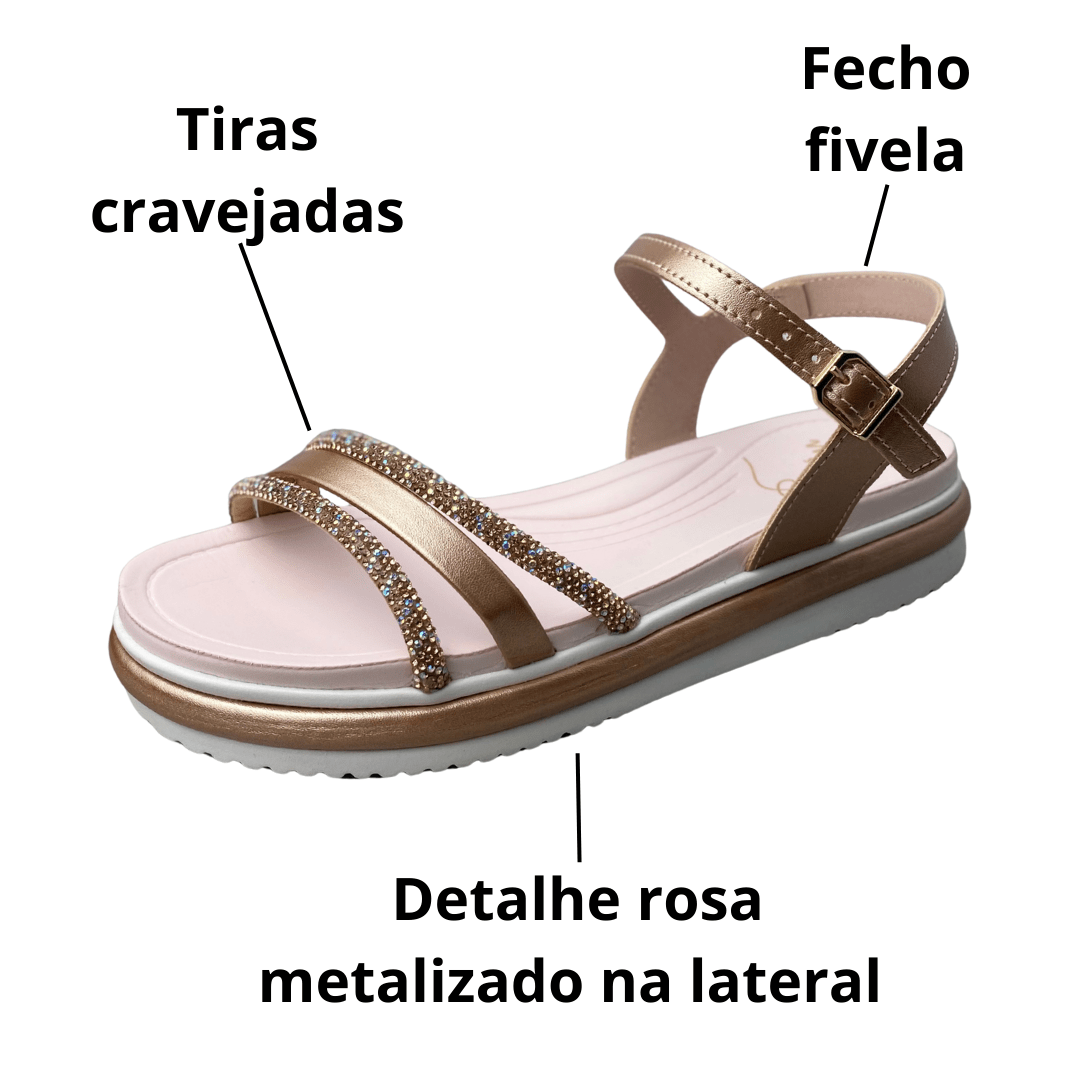 Tiras cravejadas que adicionam brilho e charme ao visual.