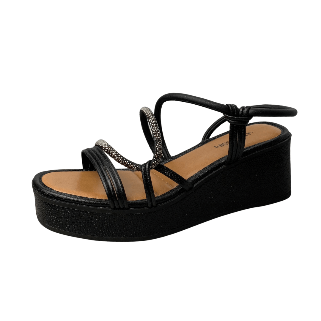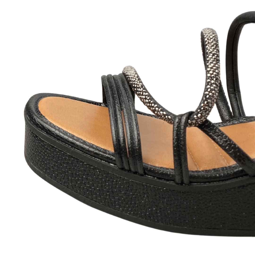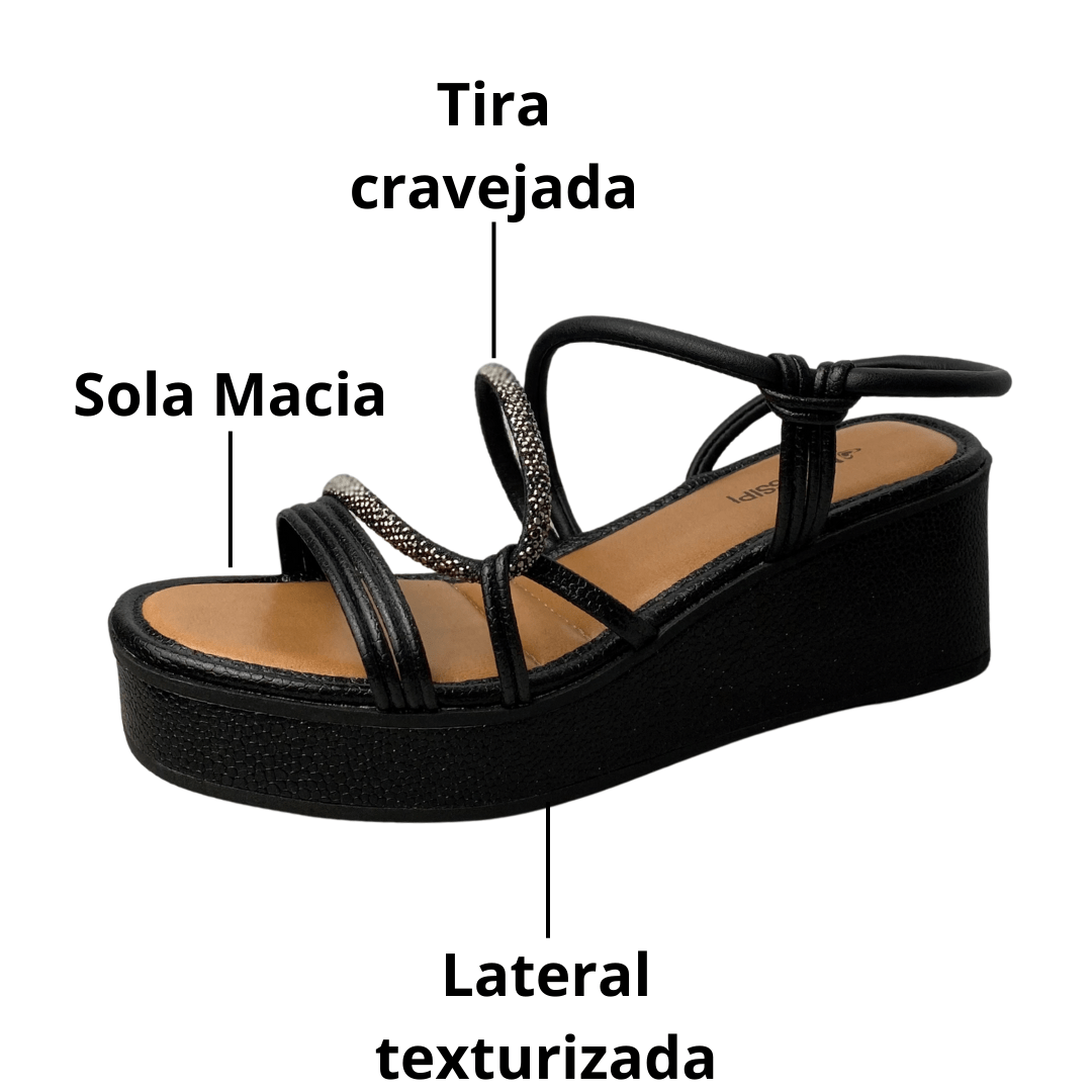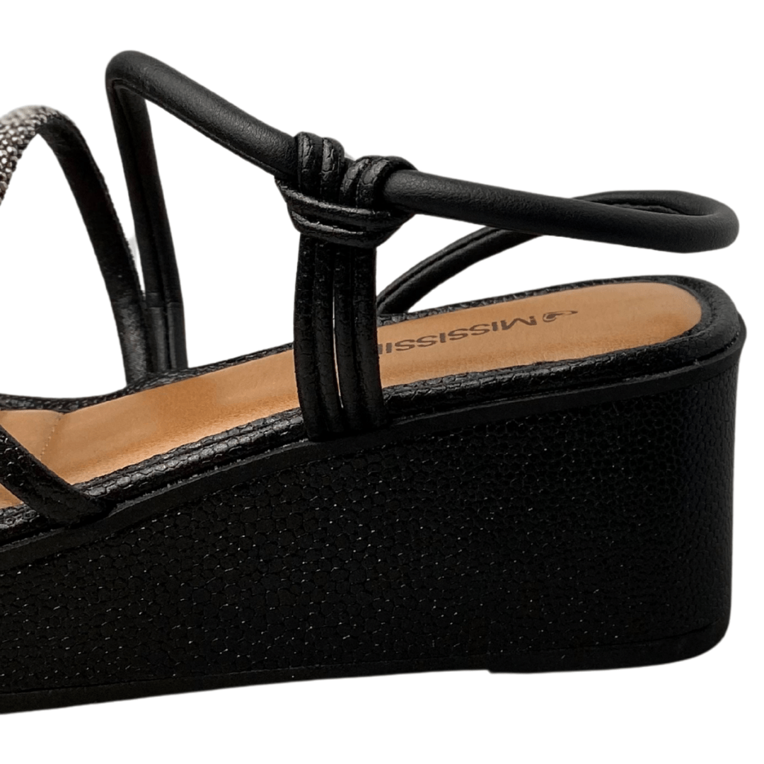 Sandália Mississipi Feminina Preta Tira Cravejada