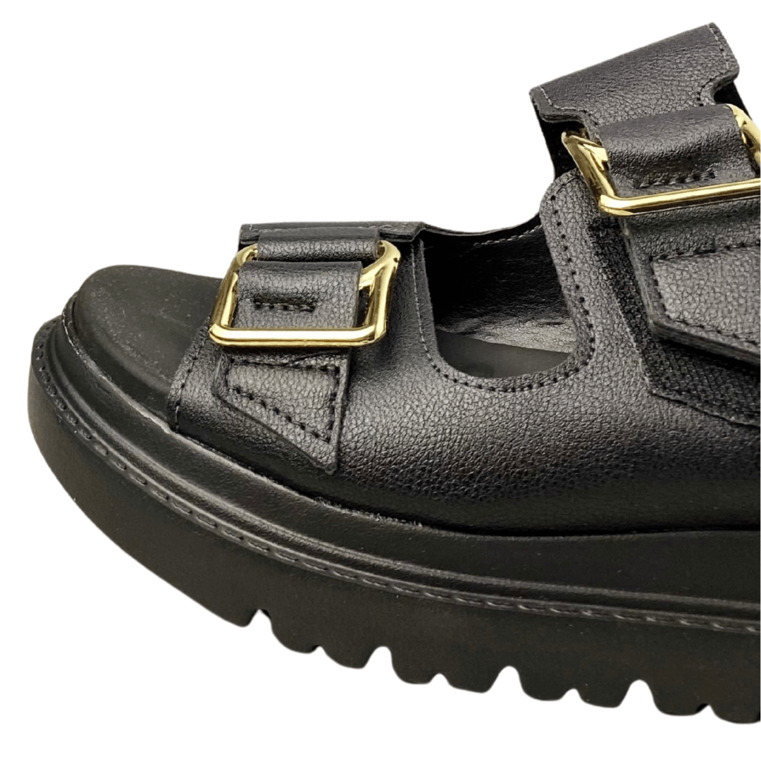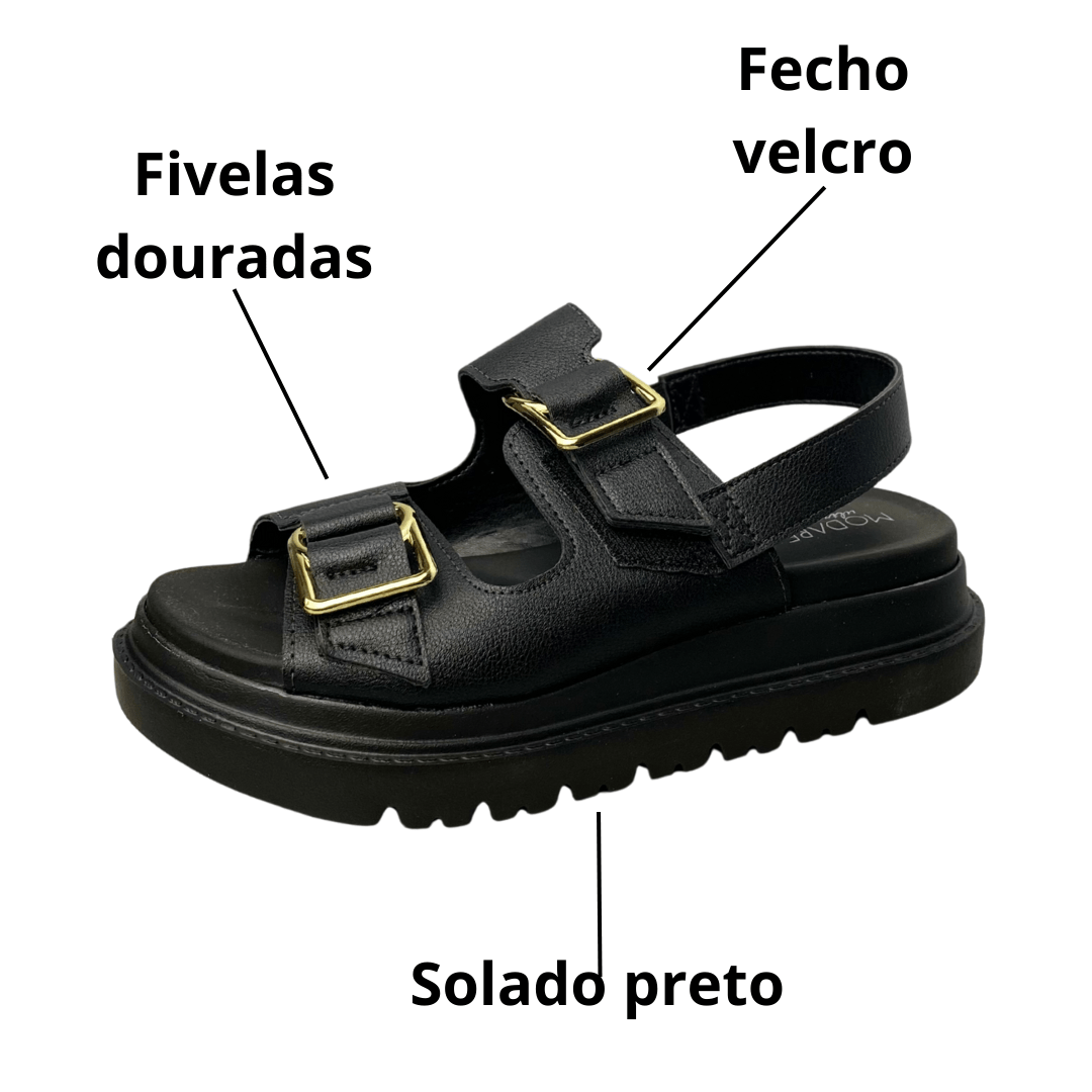 Fácil de calçar e ajustar com as fivelas decorativas e fecho velcro;