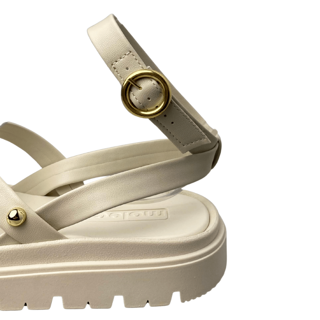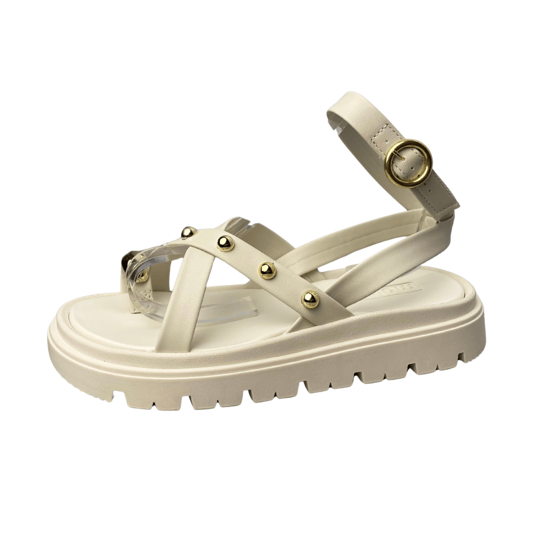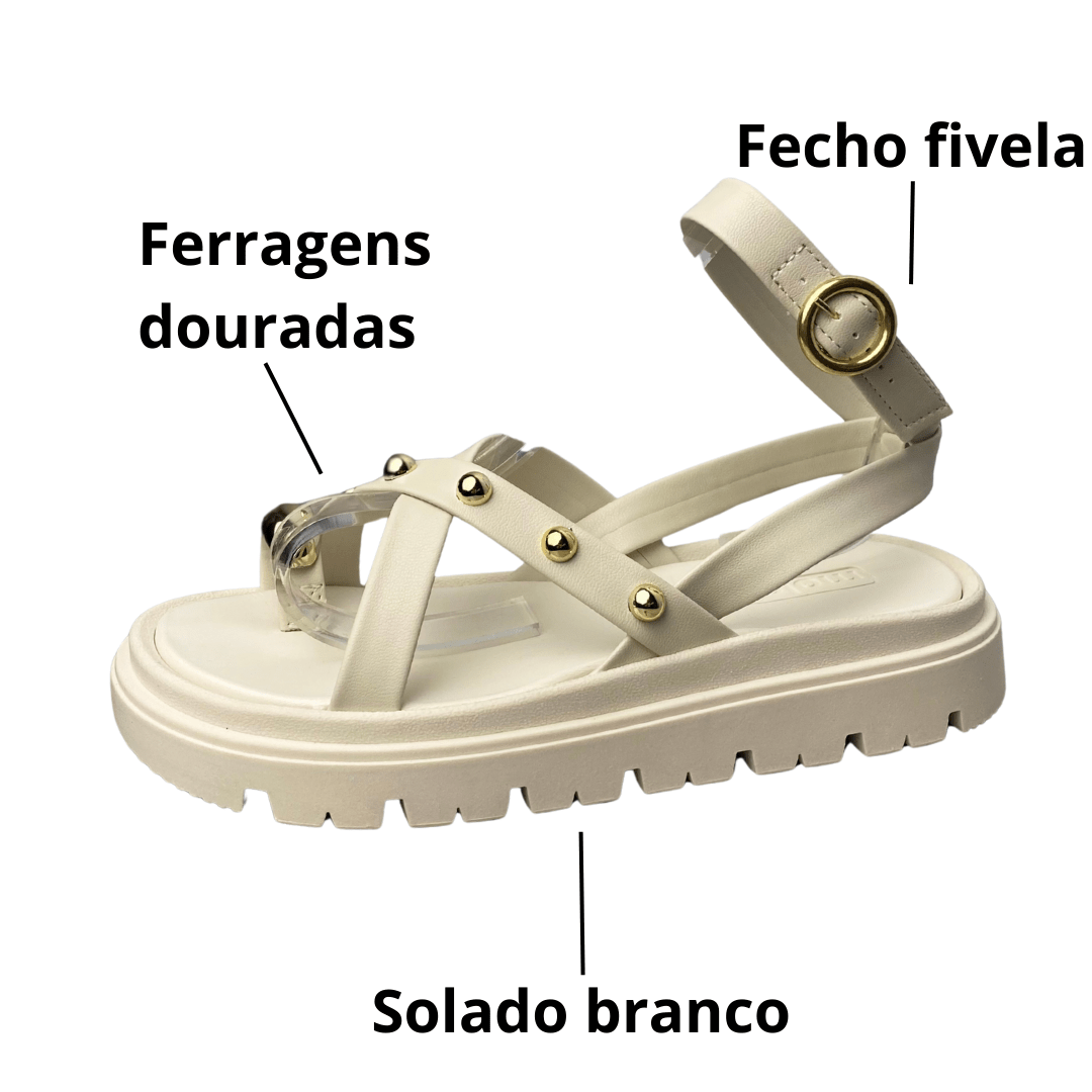 Sandália Moleca Feminina Branco Off Ferragens Douradas