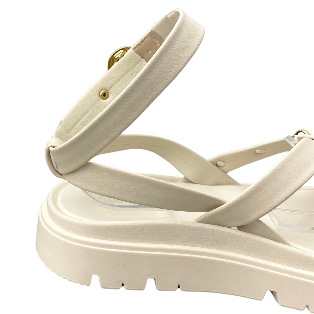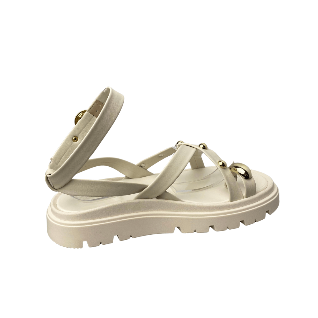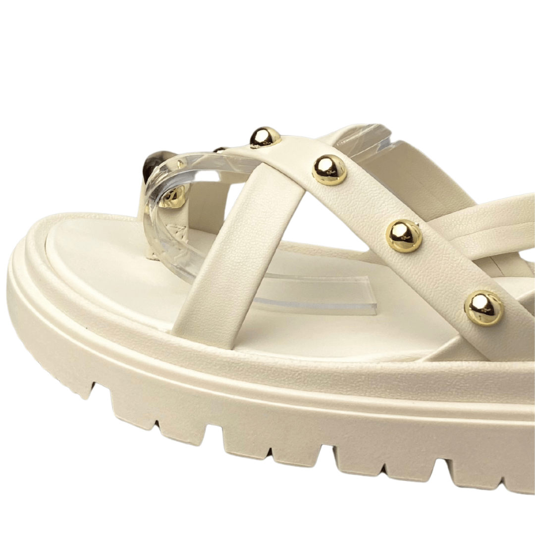 Sandália Moleca Feminina Branco Off Ferragens Douradas