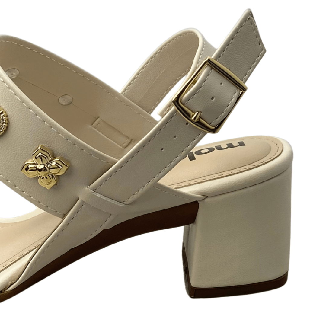Sandália Moleca Feminina Branco Off com Ferragens Douradas