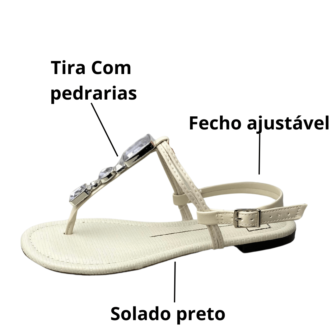 A sandália perfeita para unir conforto e elegância. Com acabamento delicado em pedrarias, ela valoriza qualquer produção, trazendo sofisticação sem perder a leveza ideal para o dia a dia.