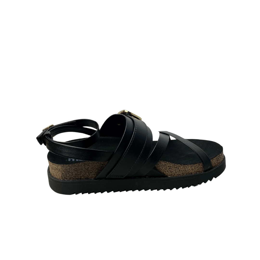 Cabedal em tiras cruzadas, que proporcionam firmeza e charme.