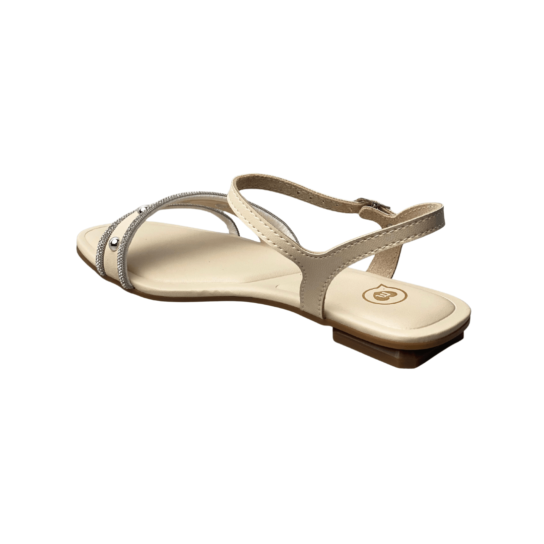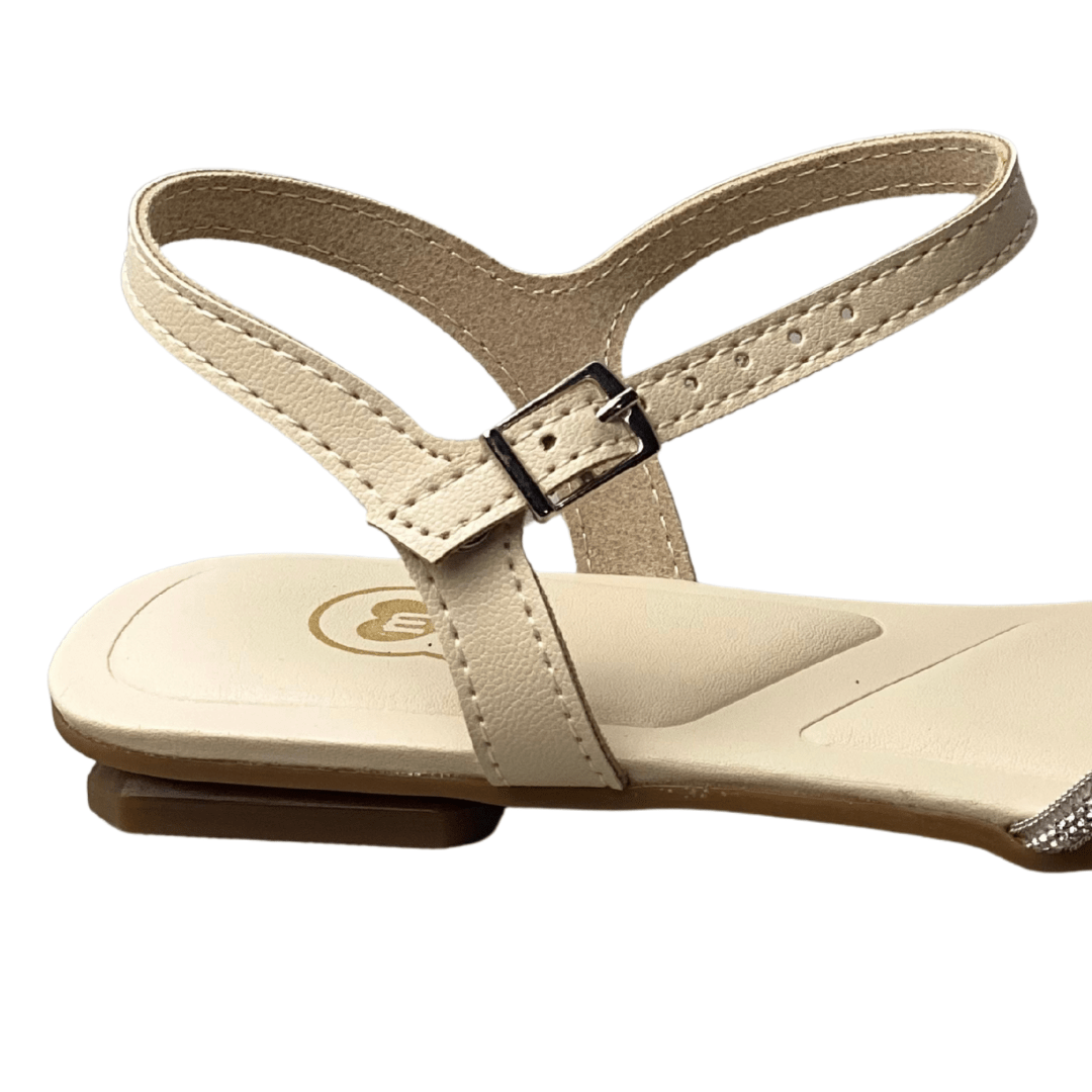 Sandália Feminina Creme com Glitter e Tiras Finas