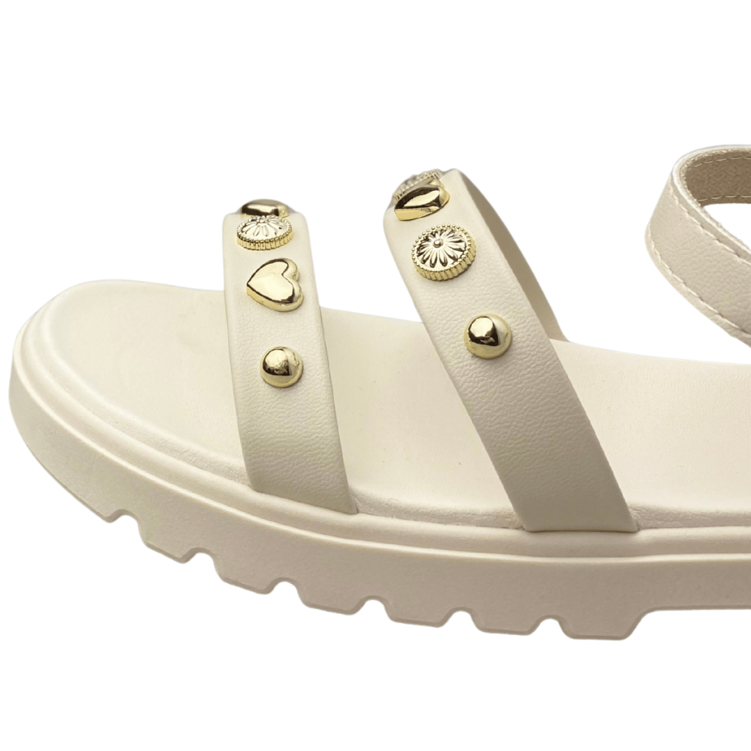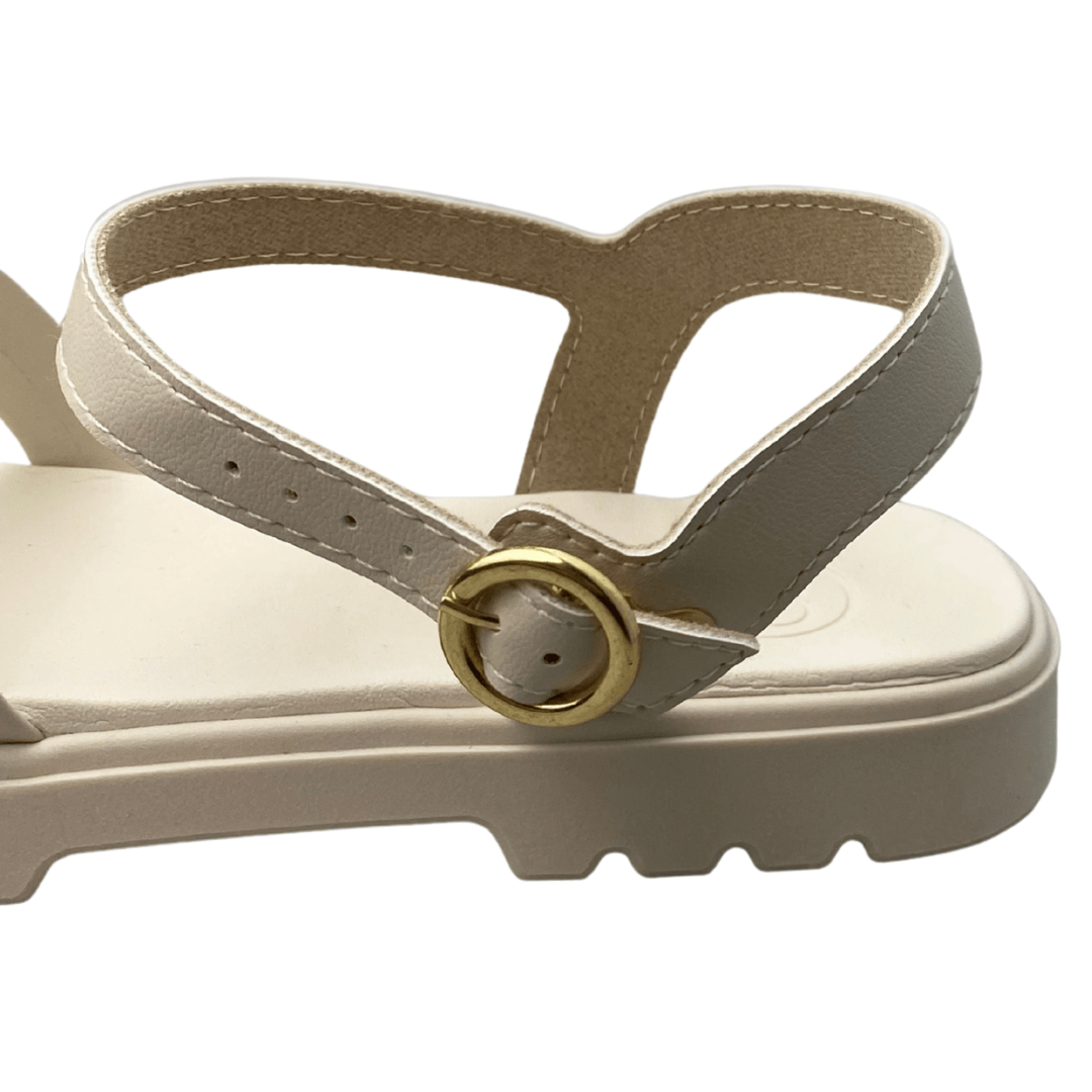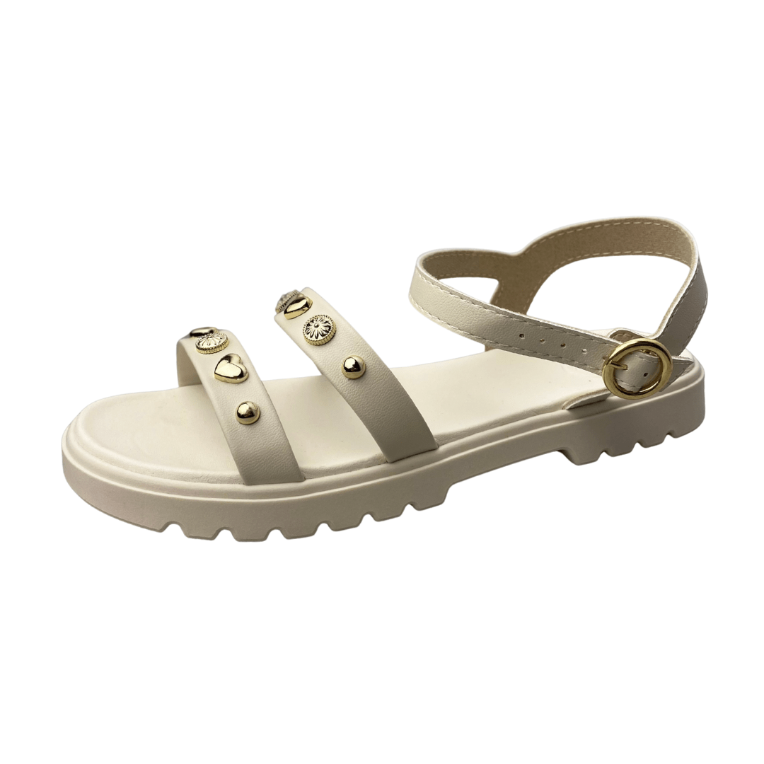 Sandália Molekinha Feminina Infantil Branco Off Ferragens Douradas