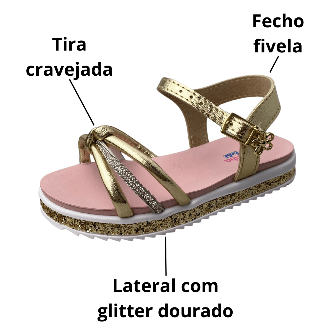 Sandália Molekinha Feminina Infantil Dourada Brilho