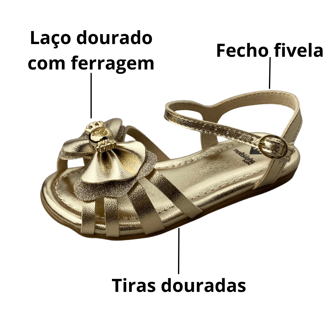 Sandália Molekinha Feminina Infantil Dourado com Laço