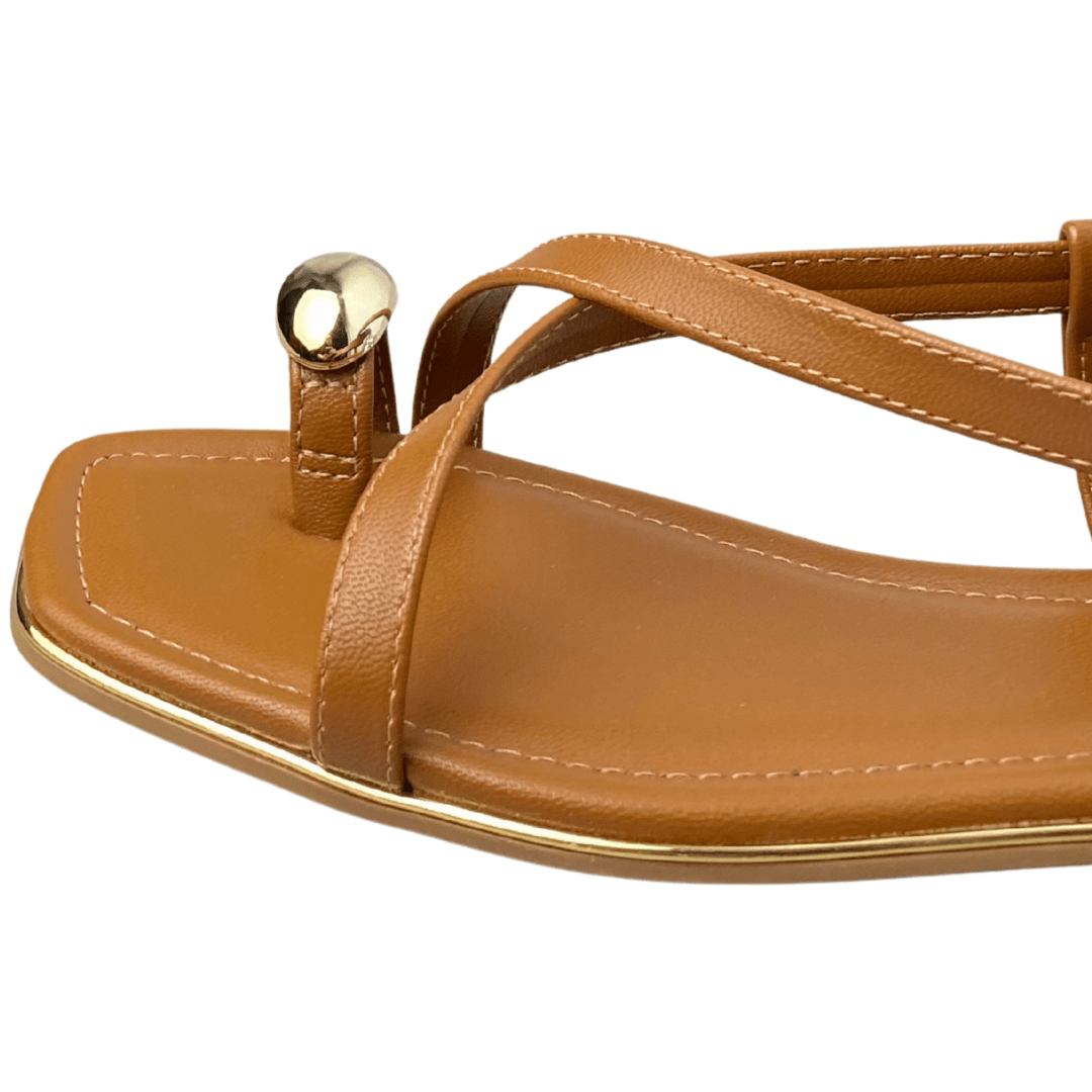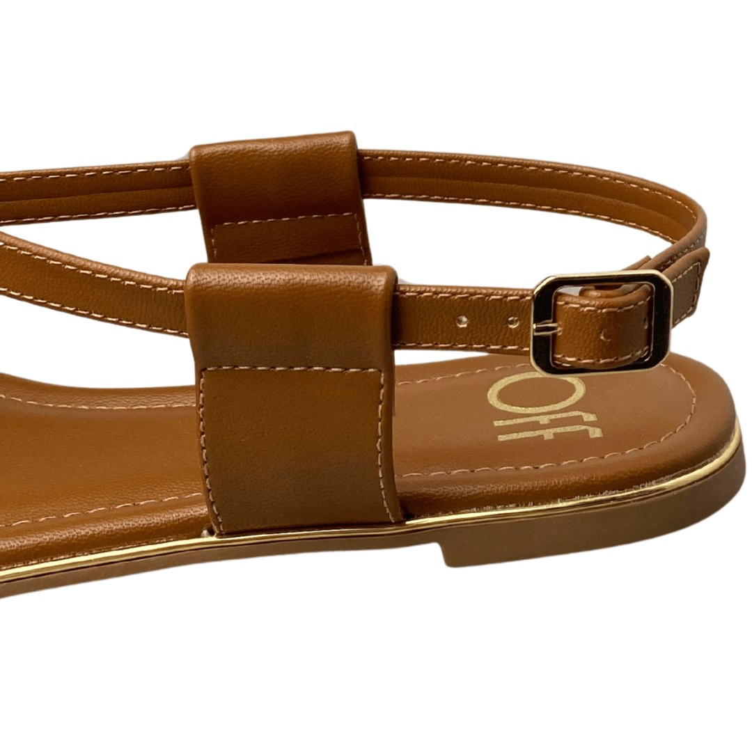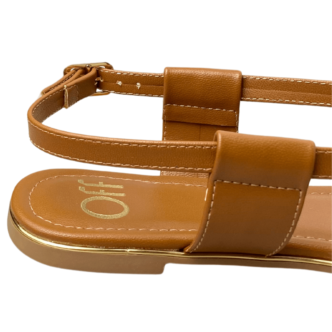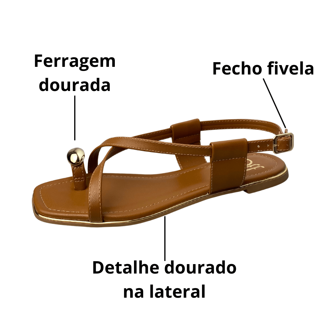 Detalhe dourado no cabedal que traz charme e exclusividade.