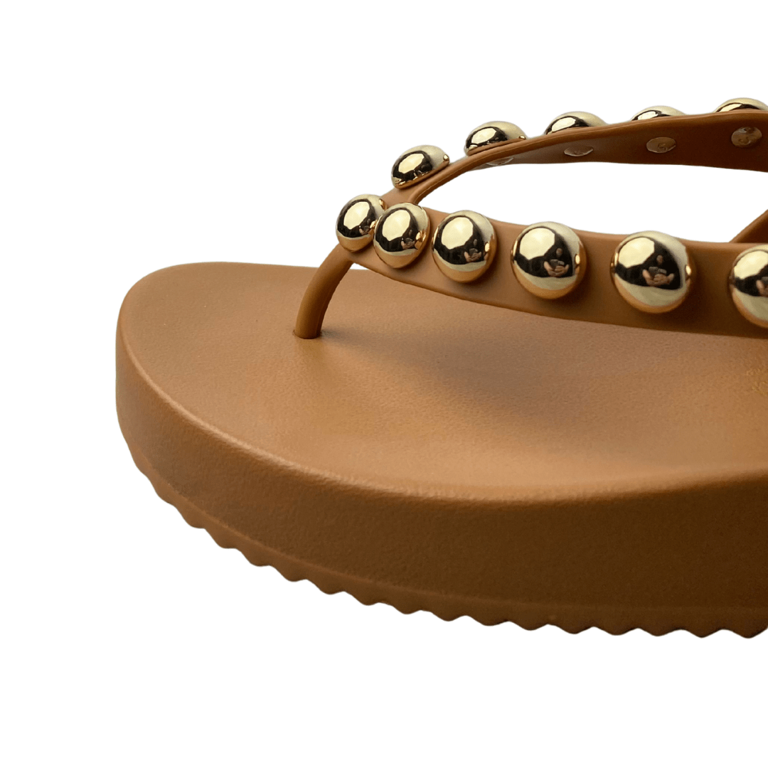 É confortável mesmo com os detalhes dourados? Sim! As tachas são lisas e bem fixadas, não incomodam durante o uso.