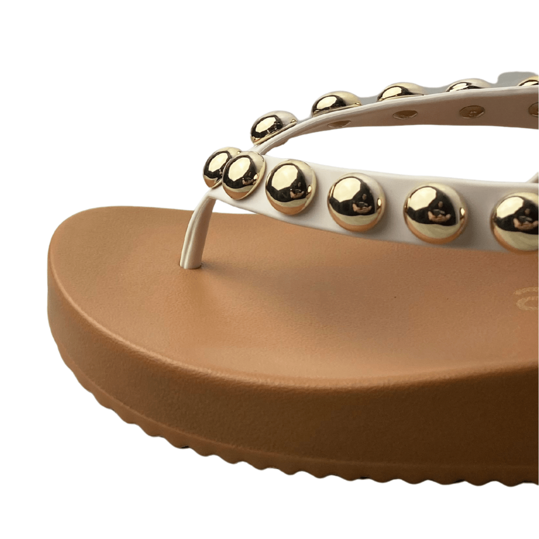 É confortável mesmo com os detalhes dourados? Sim! As tachas são lisas e bem fixadas, não incomodam durante o uso.