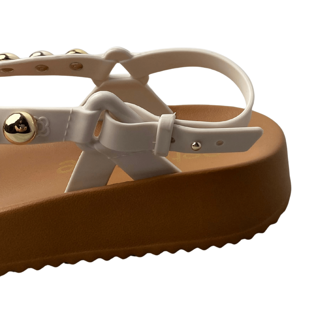 Design moderno com aplicação de tachas douradas que dão um toque fashion e ousado.
