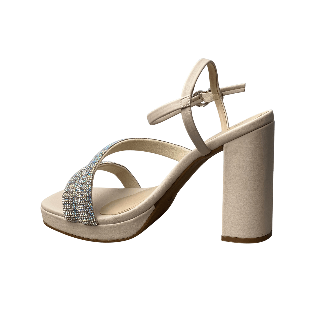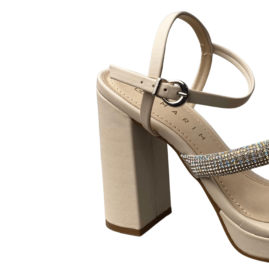 Sandália Ramarim Feminina Off White Tira Cravejada