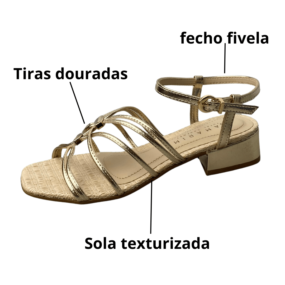 Sandália Ramarim Feminina Ouro Fecho Fivela
