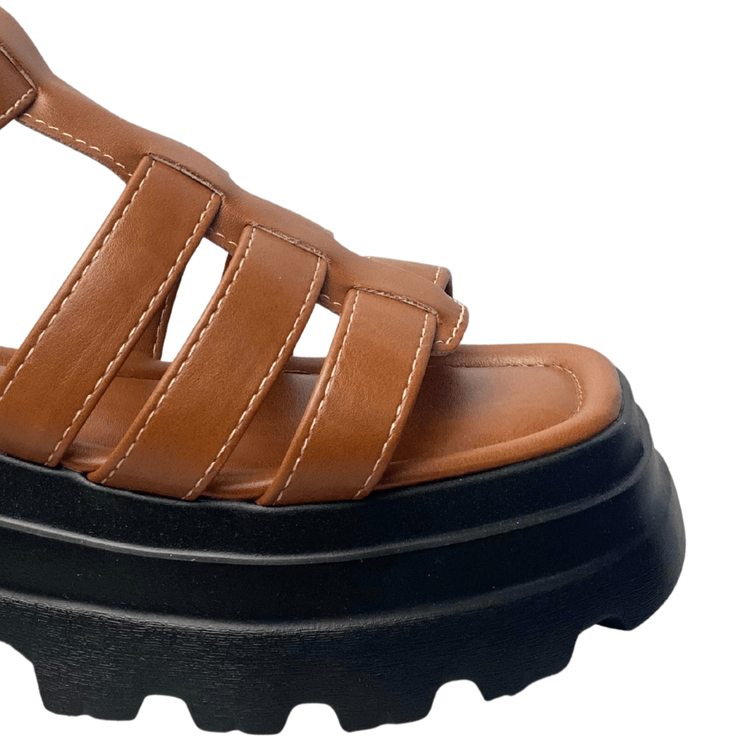 Solado: Plataforma tratorada preta, antiderrapante e super leve.