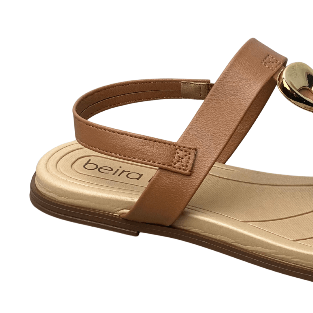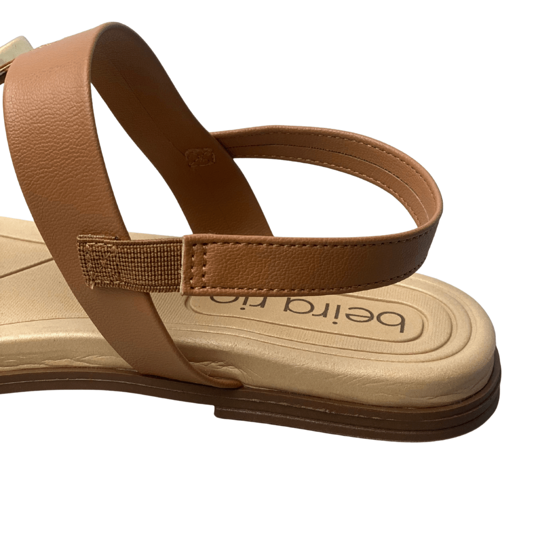 Sandália Rasteira Beira Rio Feminina Camel Pedrarias