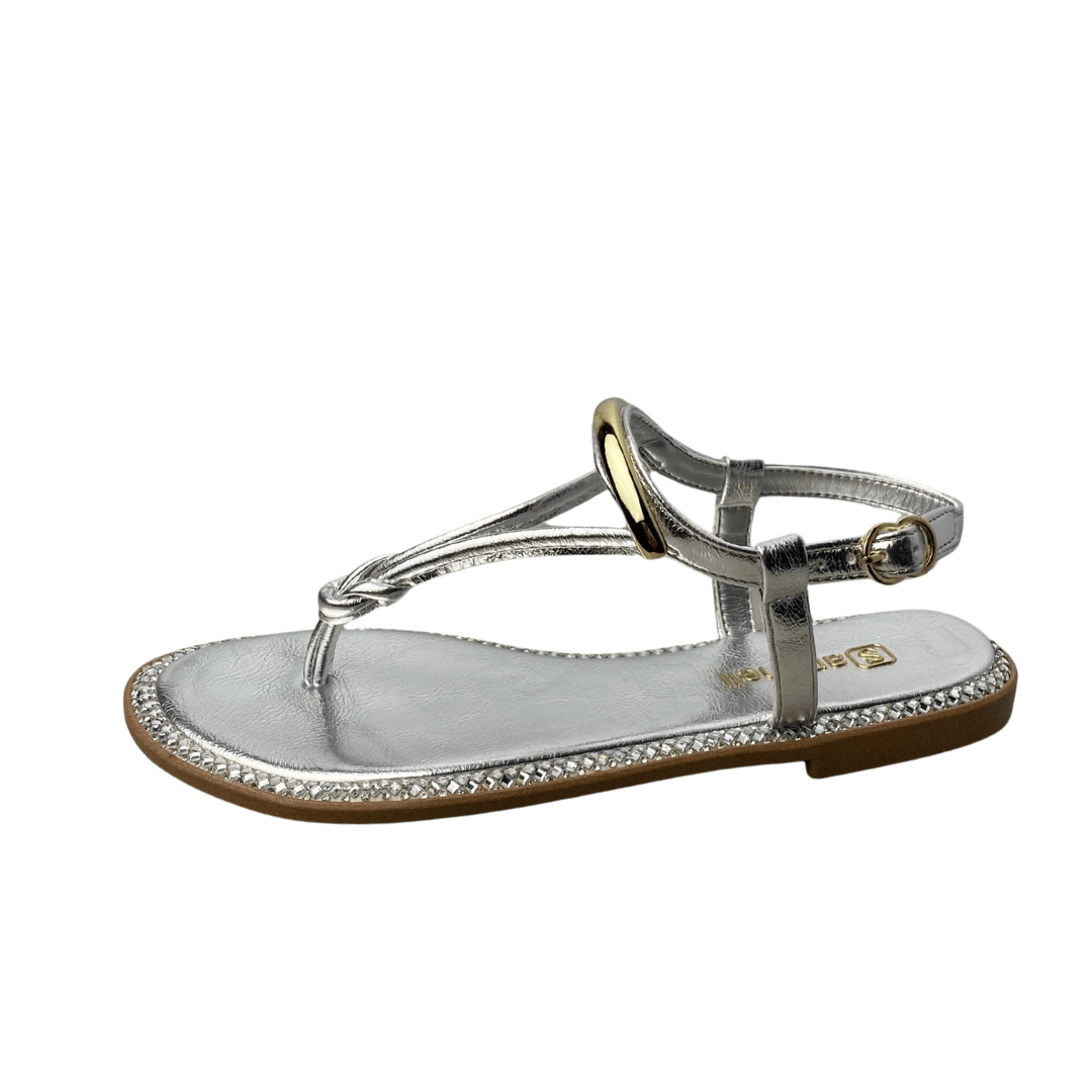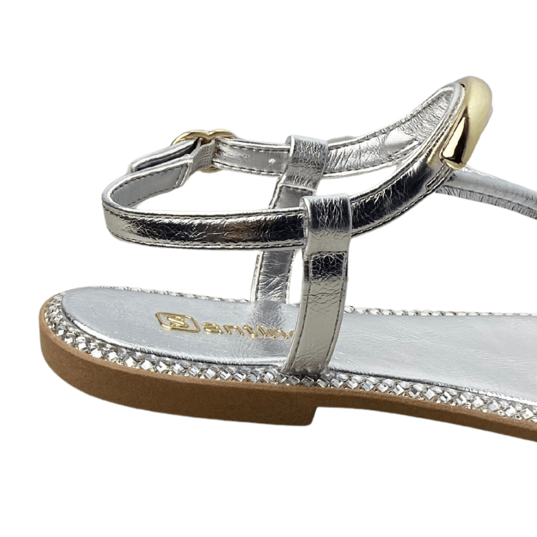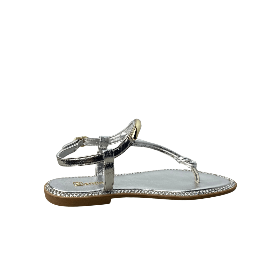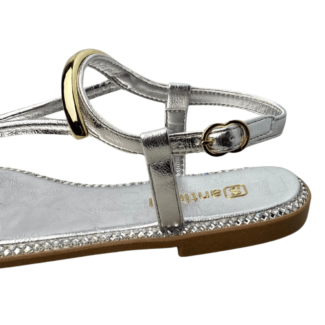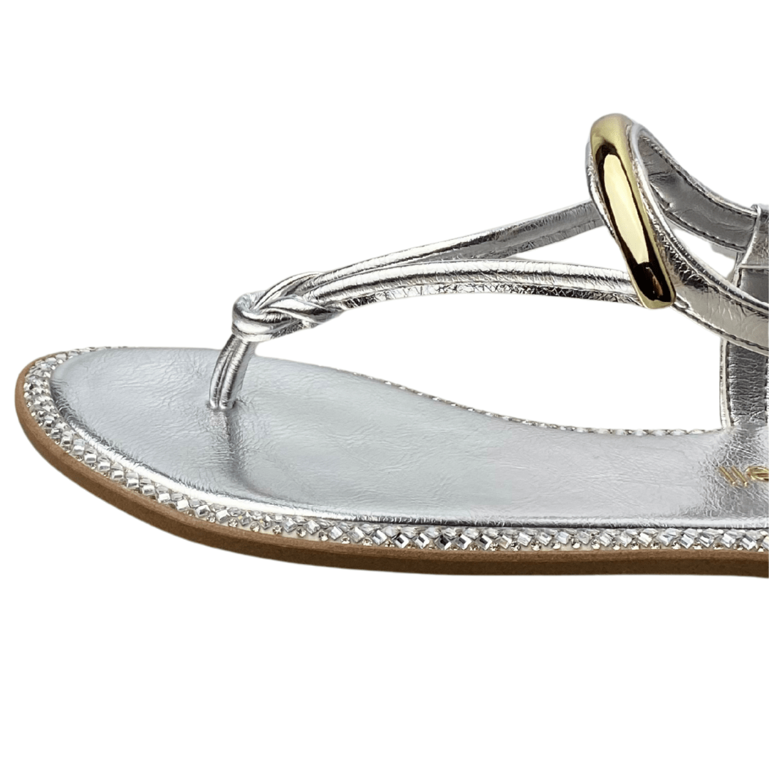 Sandália Rasteira Santinelli Feminina Prata com Ferragem Dourada