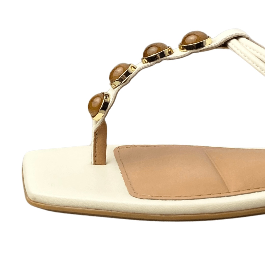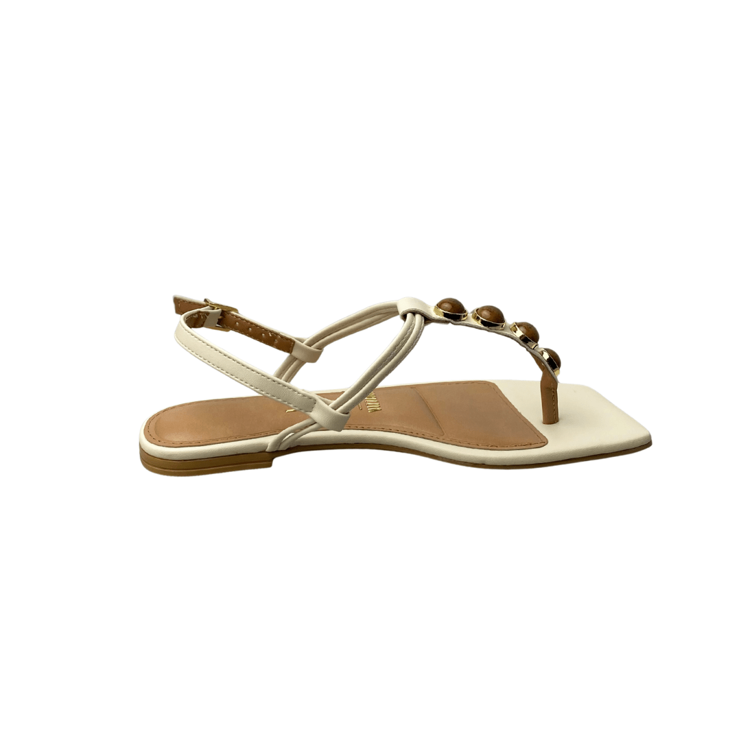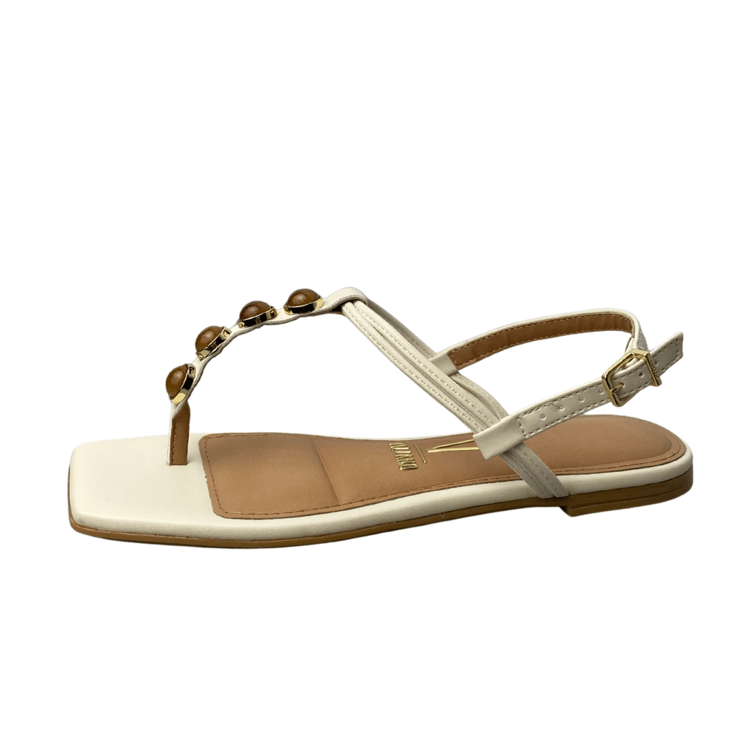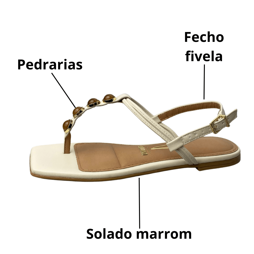 Sandália Rasteira Vizzano Feminina Branco Off com Pedrarias