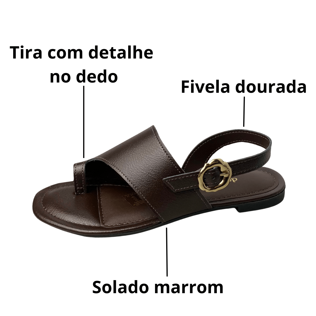 Fivela dourada que acrescenta sofisticação ao modelo.
