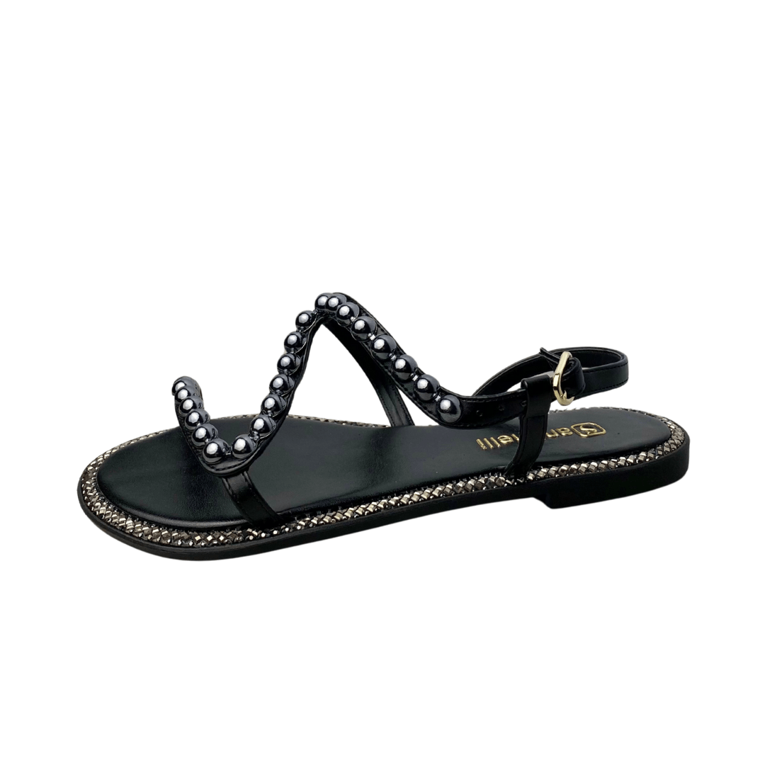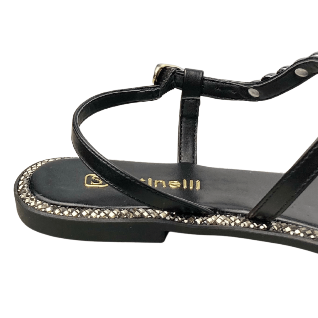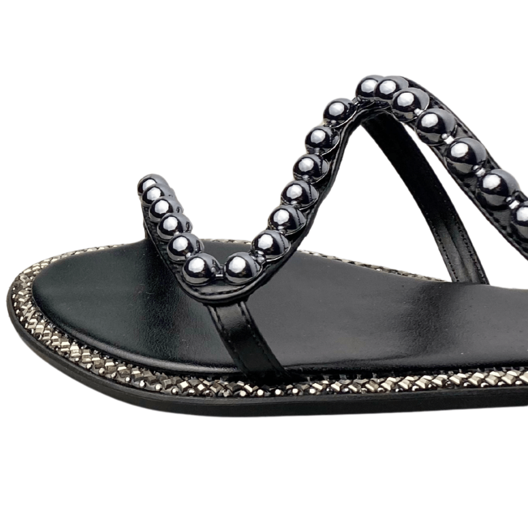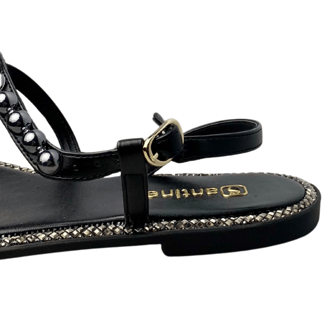 Sandália Rasteirinha Santinelli Feminina Preta Cravejada