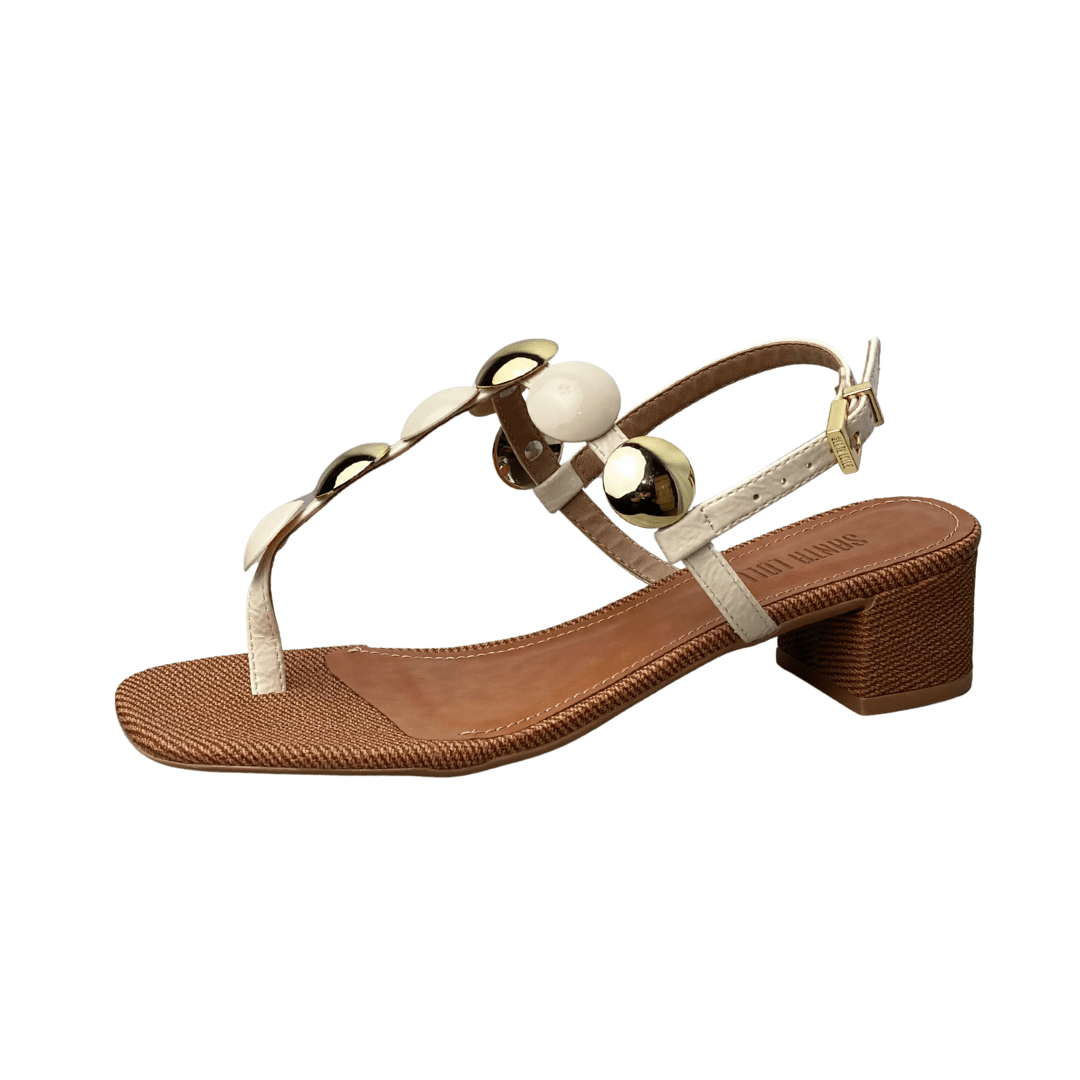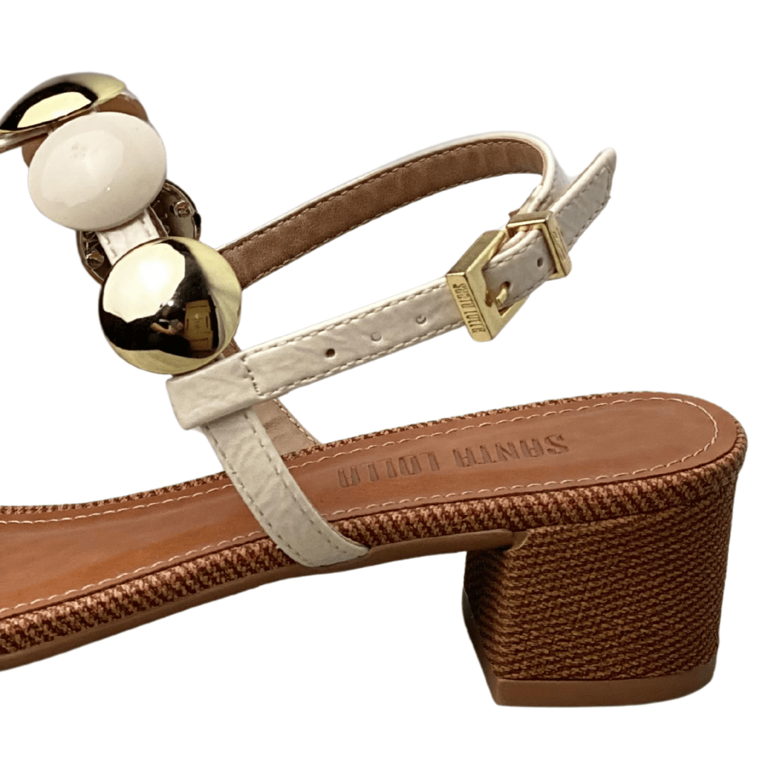 Sandália Santa Lolla Feminina Off White Ferragens Douradas