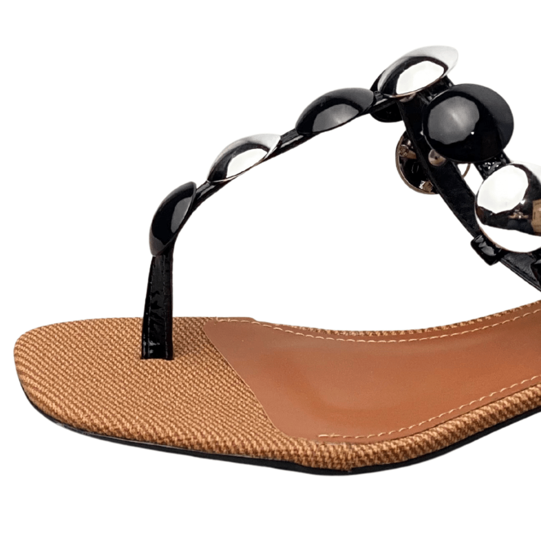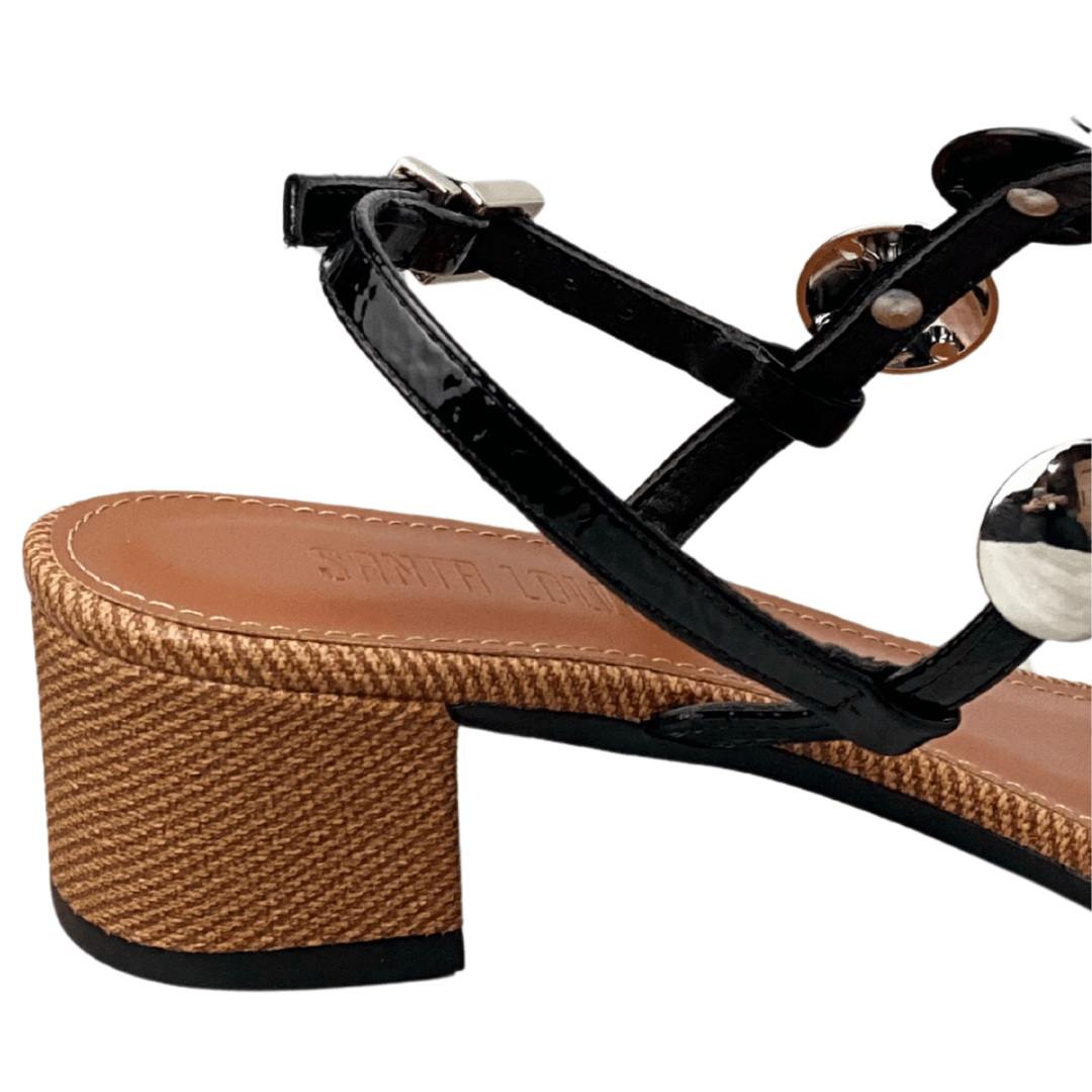 Sandália Santa Lolla Feminina Preto Ferragens Prateadas