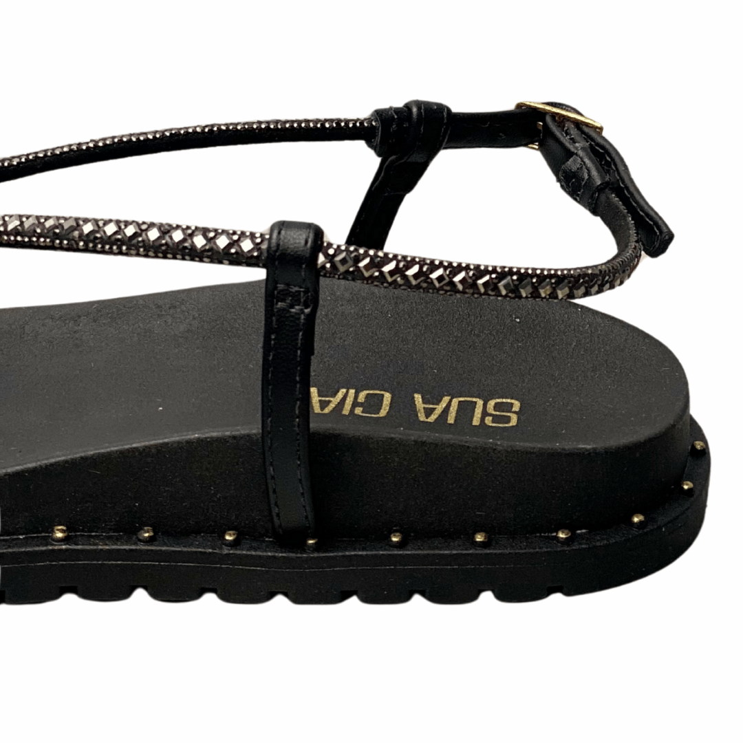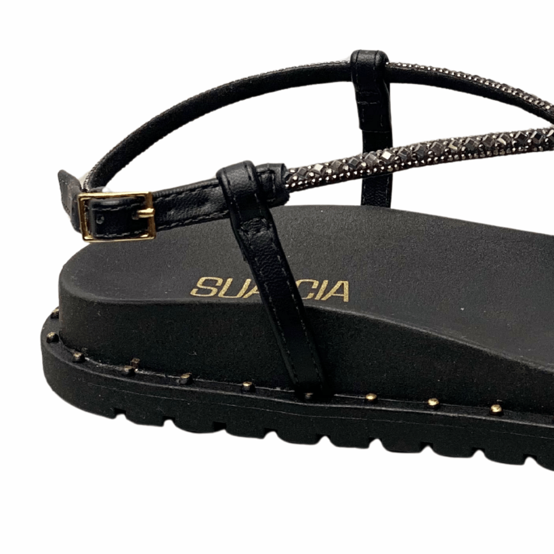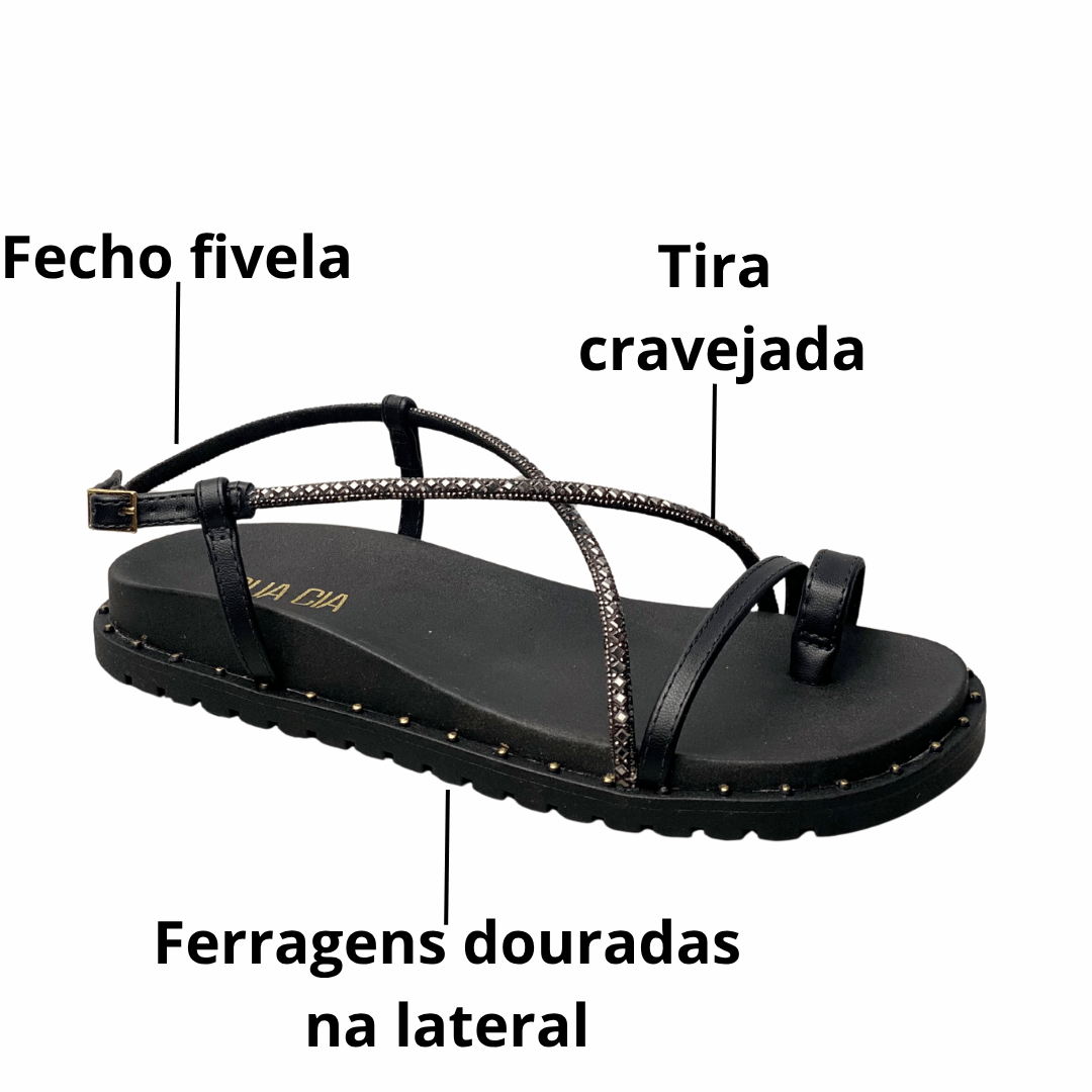 Sandália Sua Cia Feminina Preto Tira Cravejada