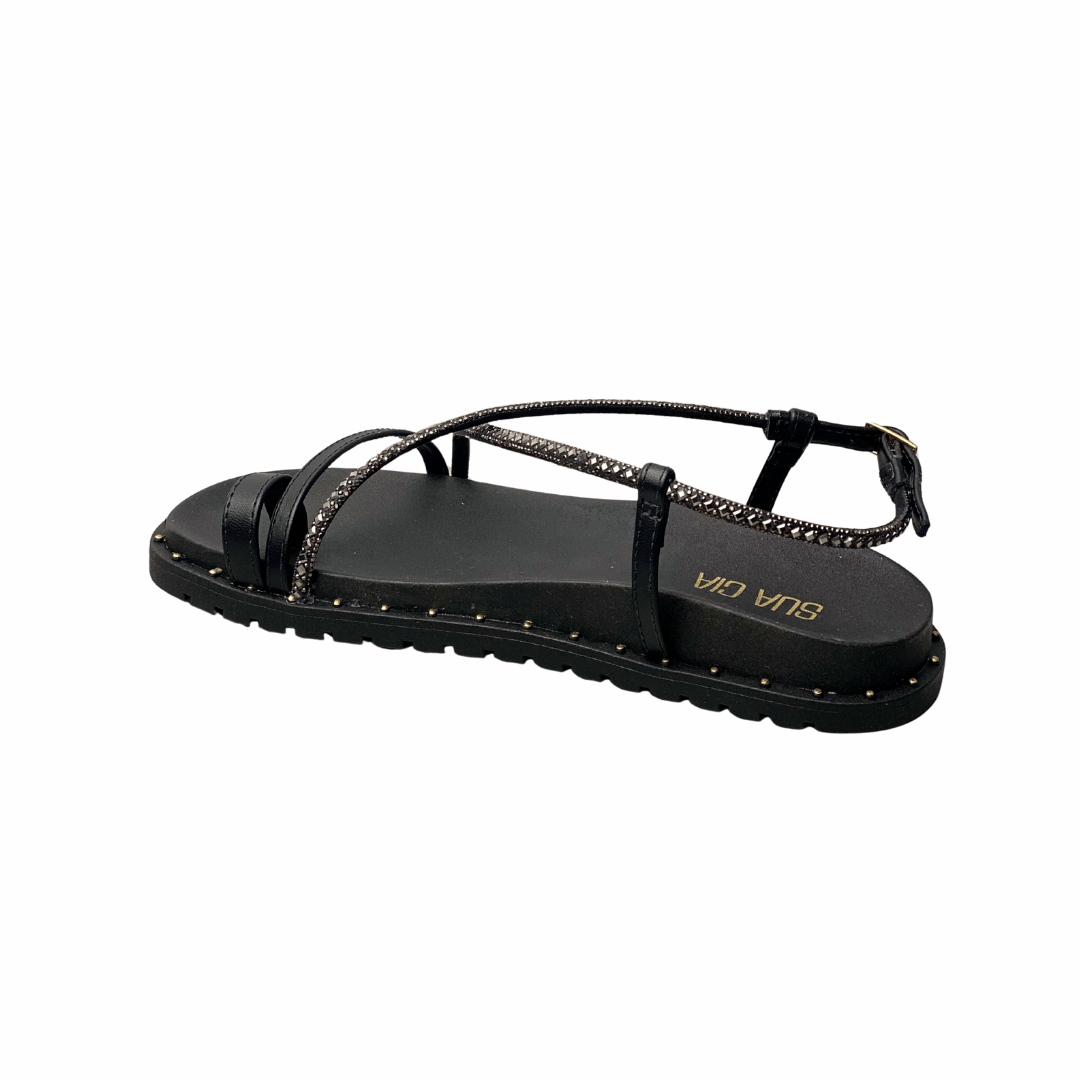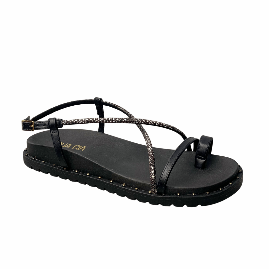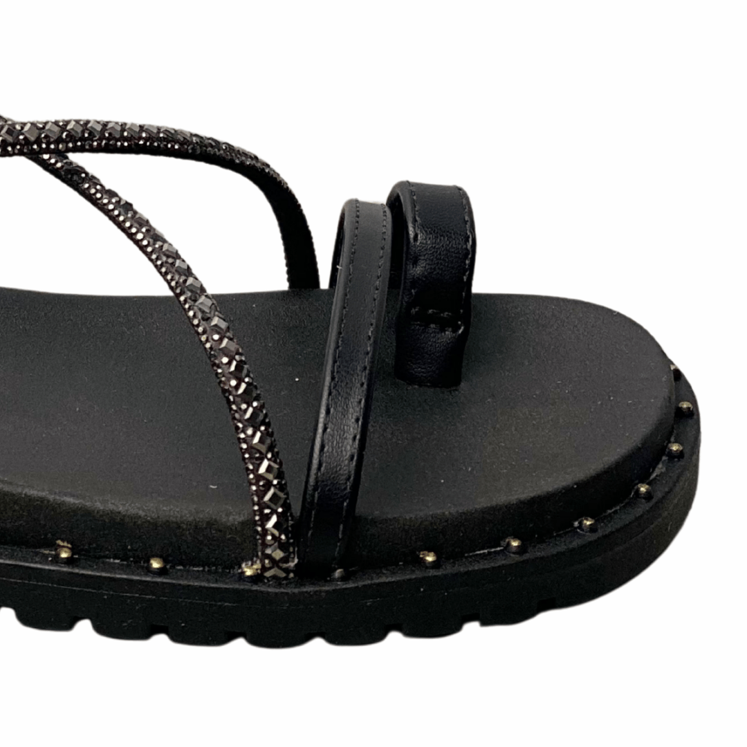 Sandália Sua Cia Feminina Preto Tira Cravejada
