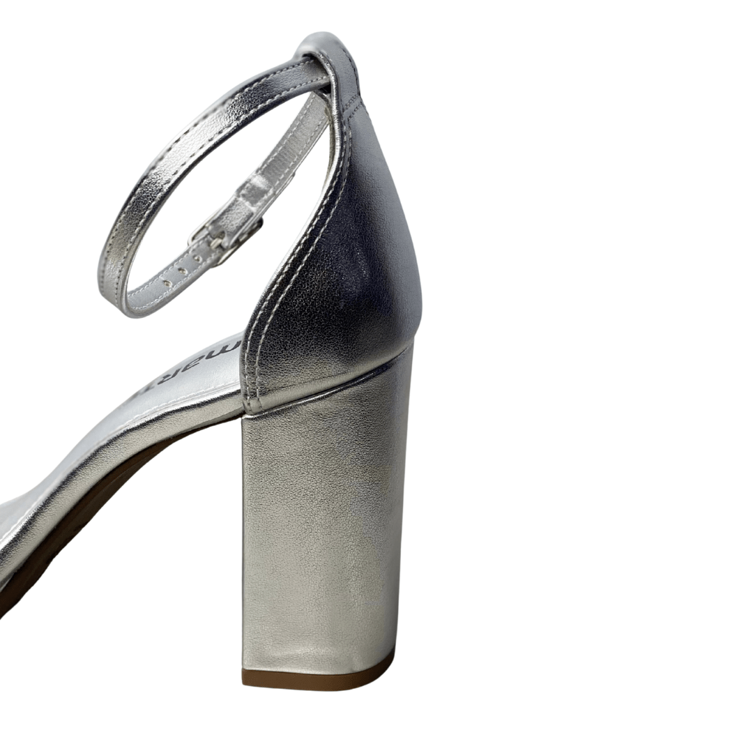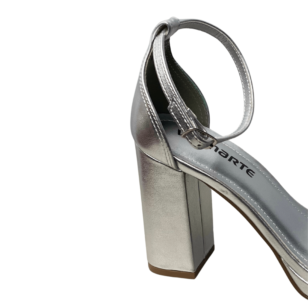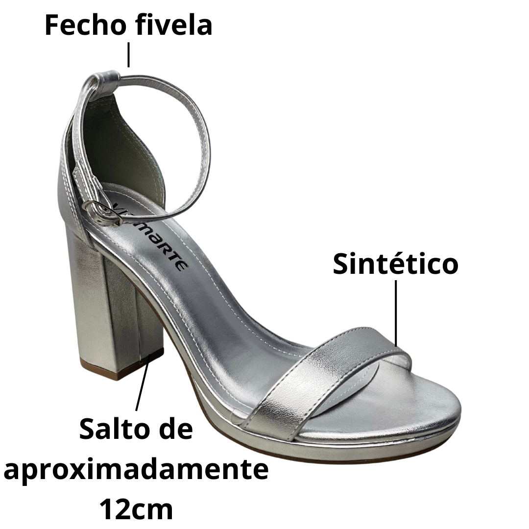Design: Sandália de salto alto e grosso (bloco), aberta, com bico quadrado ou arredondado.