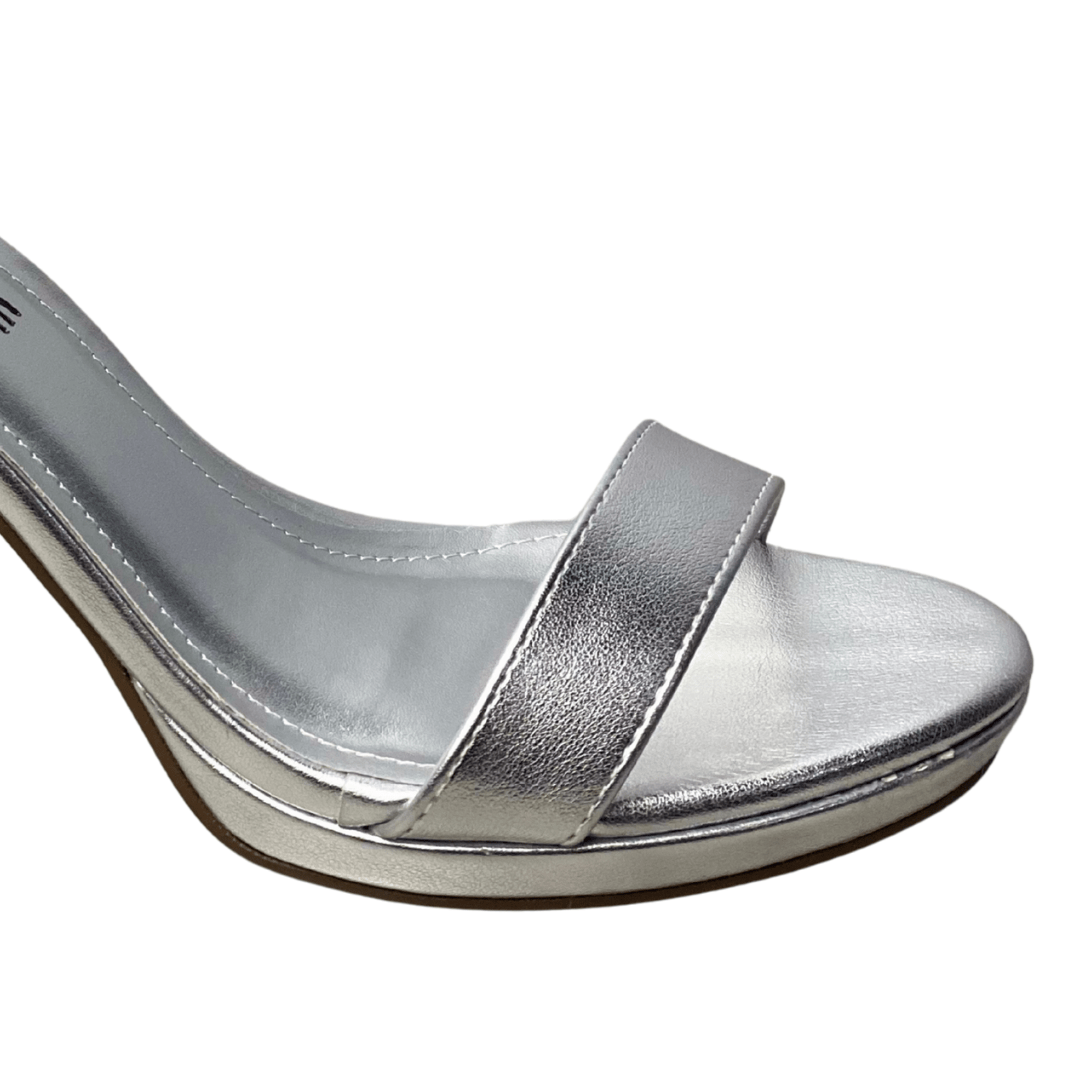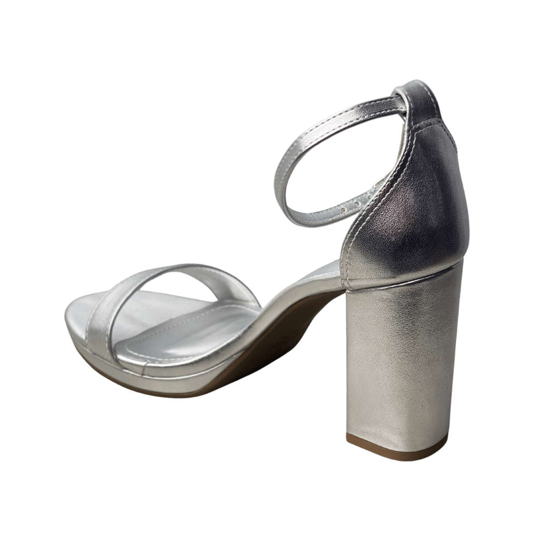 Salto: Salto Bloco (grosso) forrado no mesmo material metalizado.