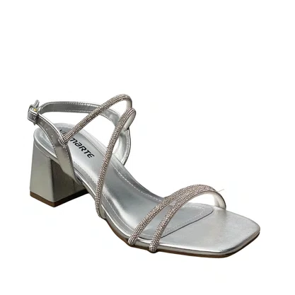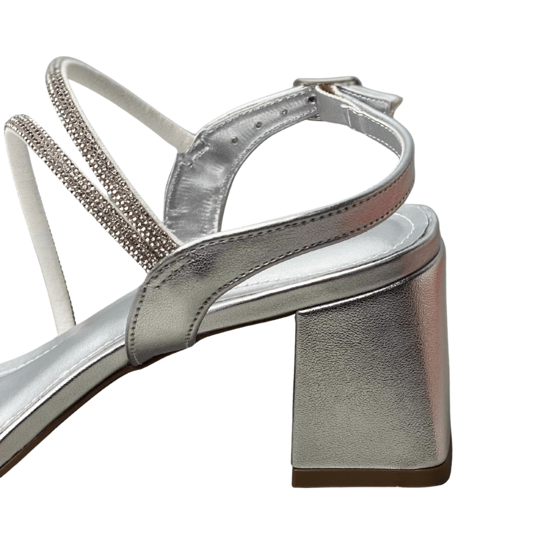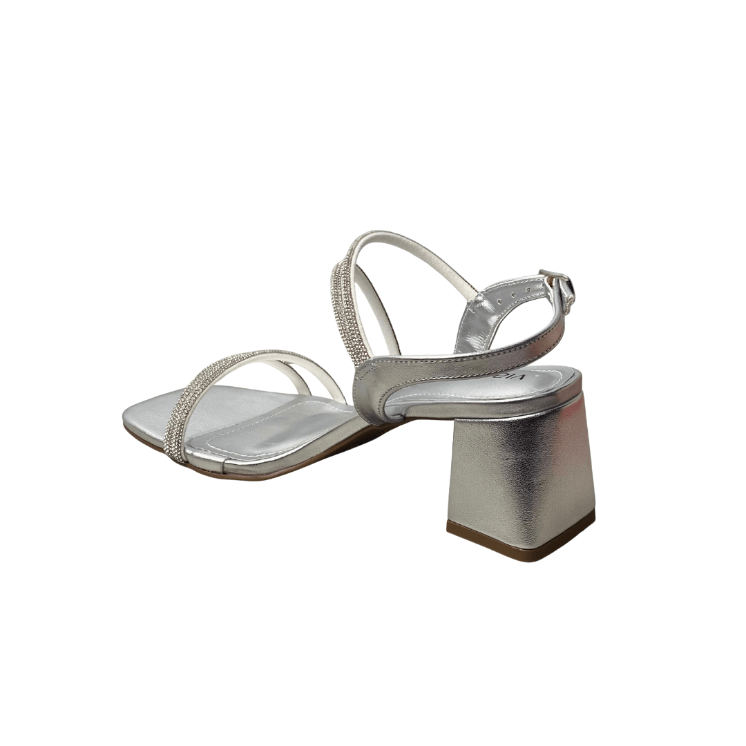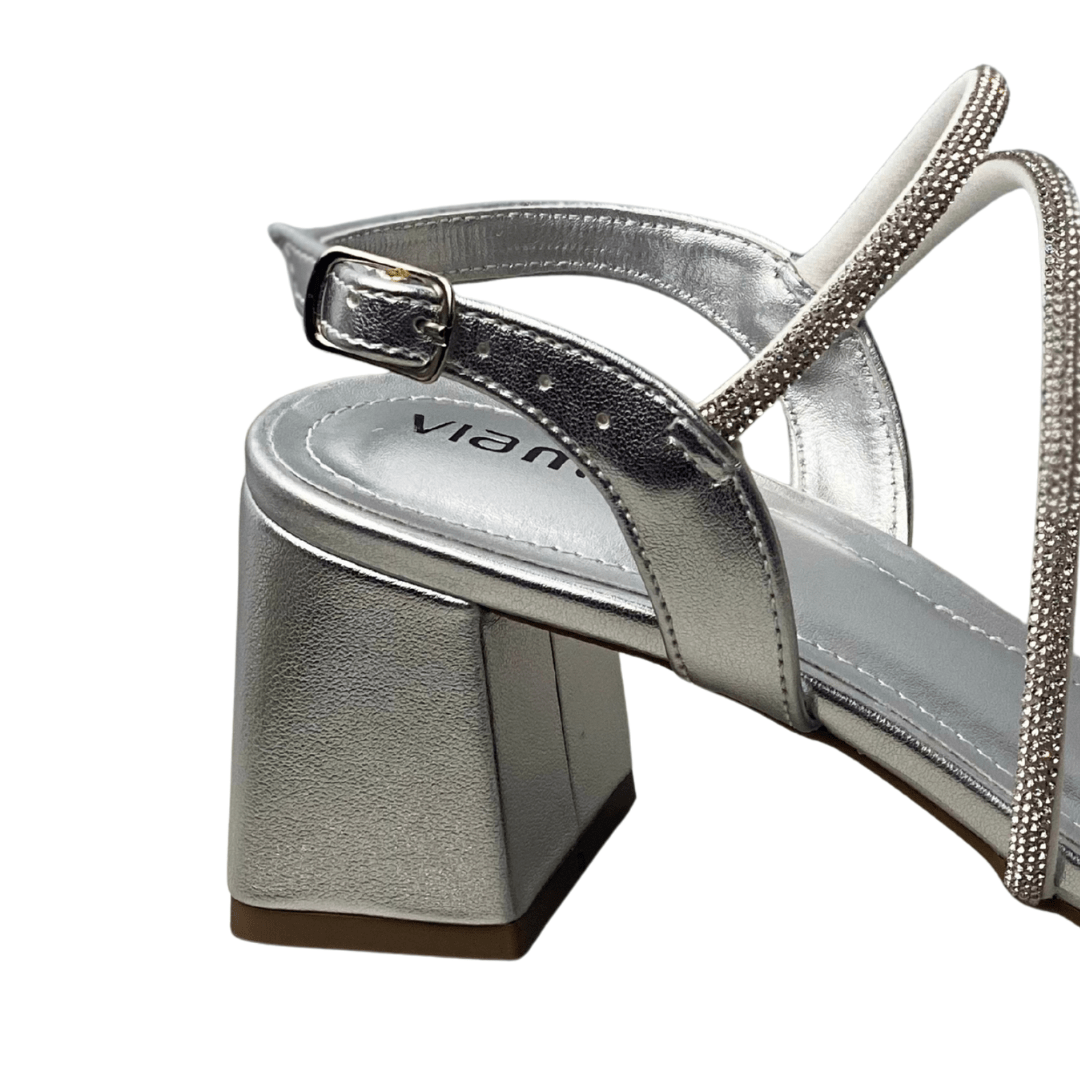 Sandália Via Marte Feminina Prata com Salto Bloco Baixo e Tiras Cravejadas