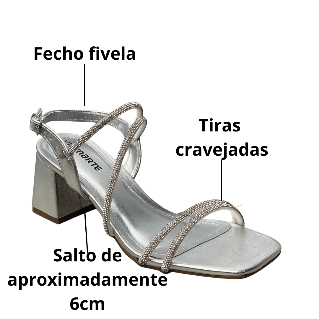 Posso usar durante o dia? Com certeza! A cor prata e o salto discreto permitem que ela seja usada durante o dia, adicionando um ponto de luz e modernidade ao seu look.