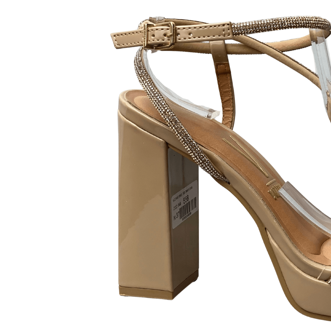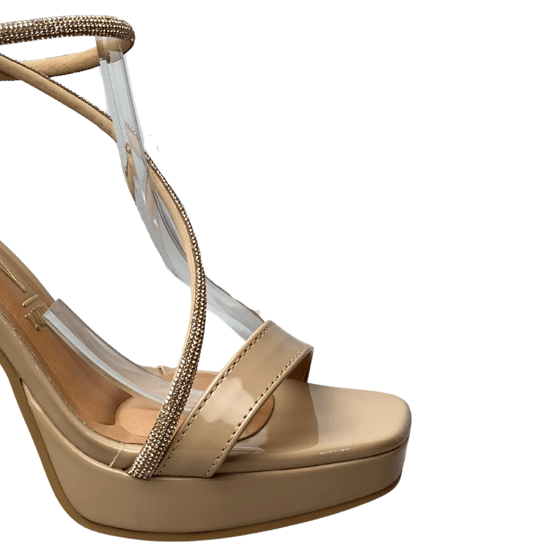 Com certeza! O verniz bege e as tiras cravejadas trazem elegância e sofisticação. -