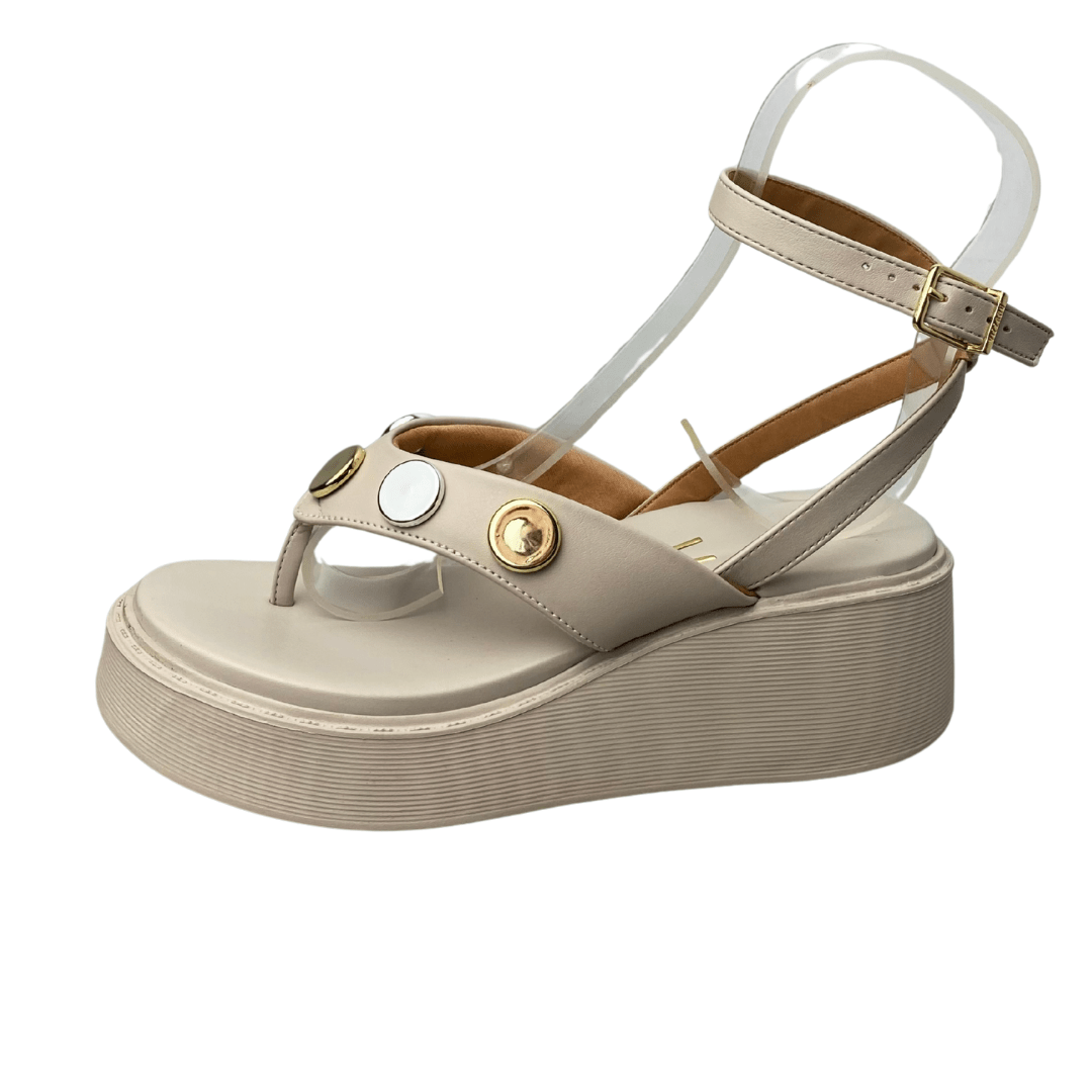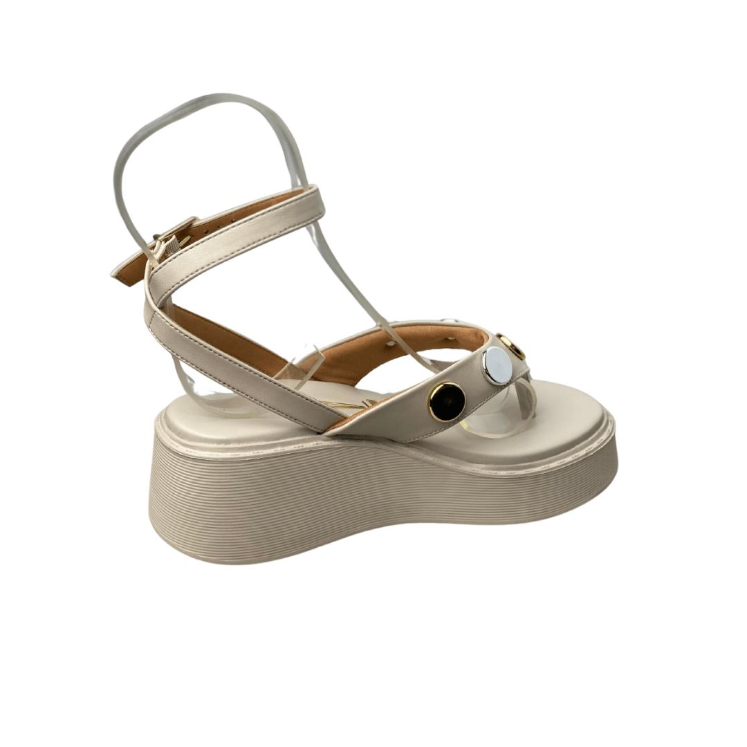 Detalhes frontais com aplicações metálicas douradas e brancas, que trazem charme ao visual.