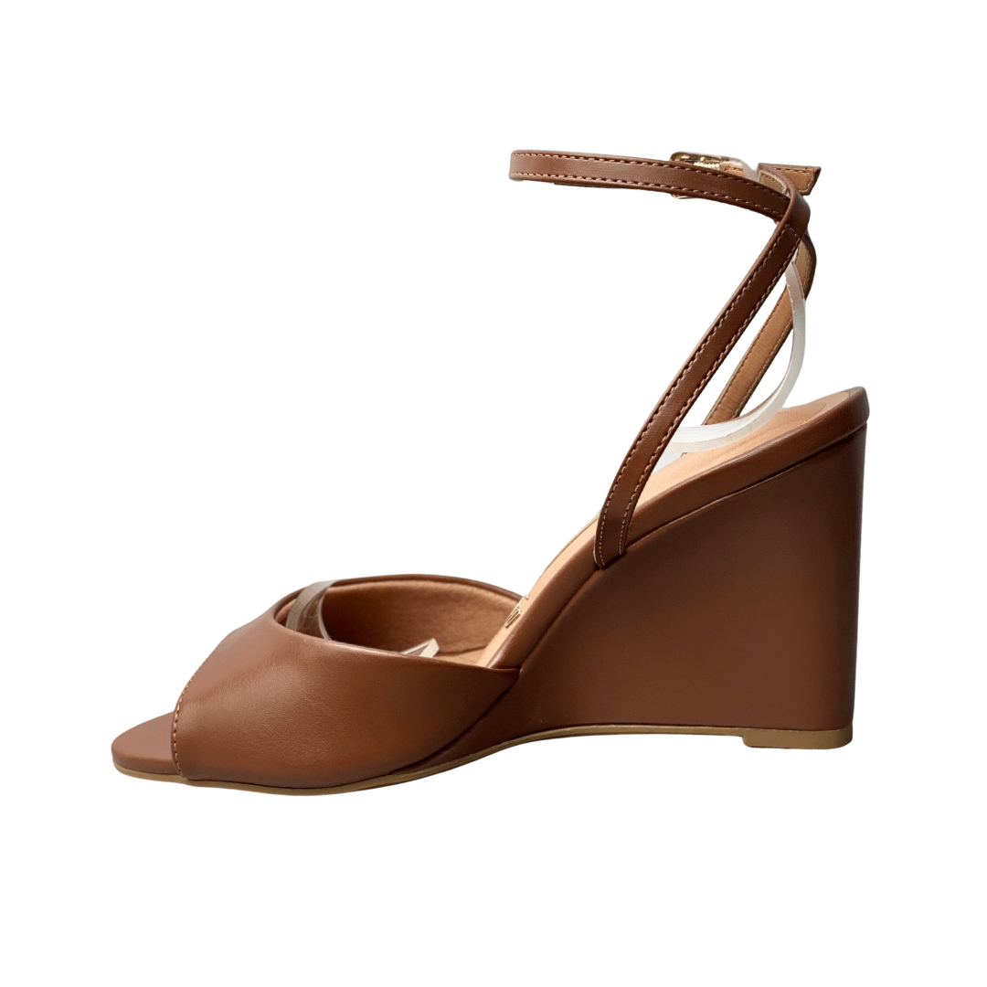 O salto anabela oferece estabilidade e equilíbrio, ideal para quem busca conforto sem abrir mão do estilo.